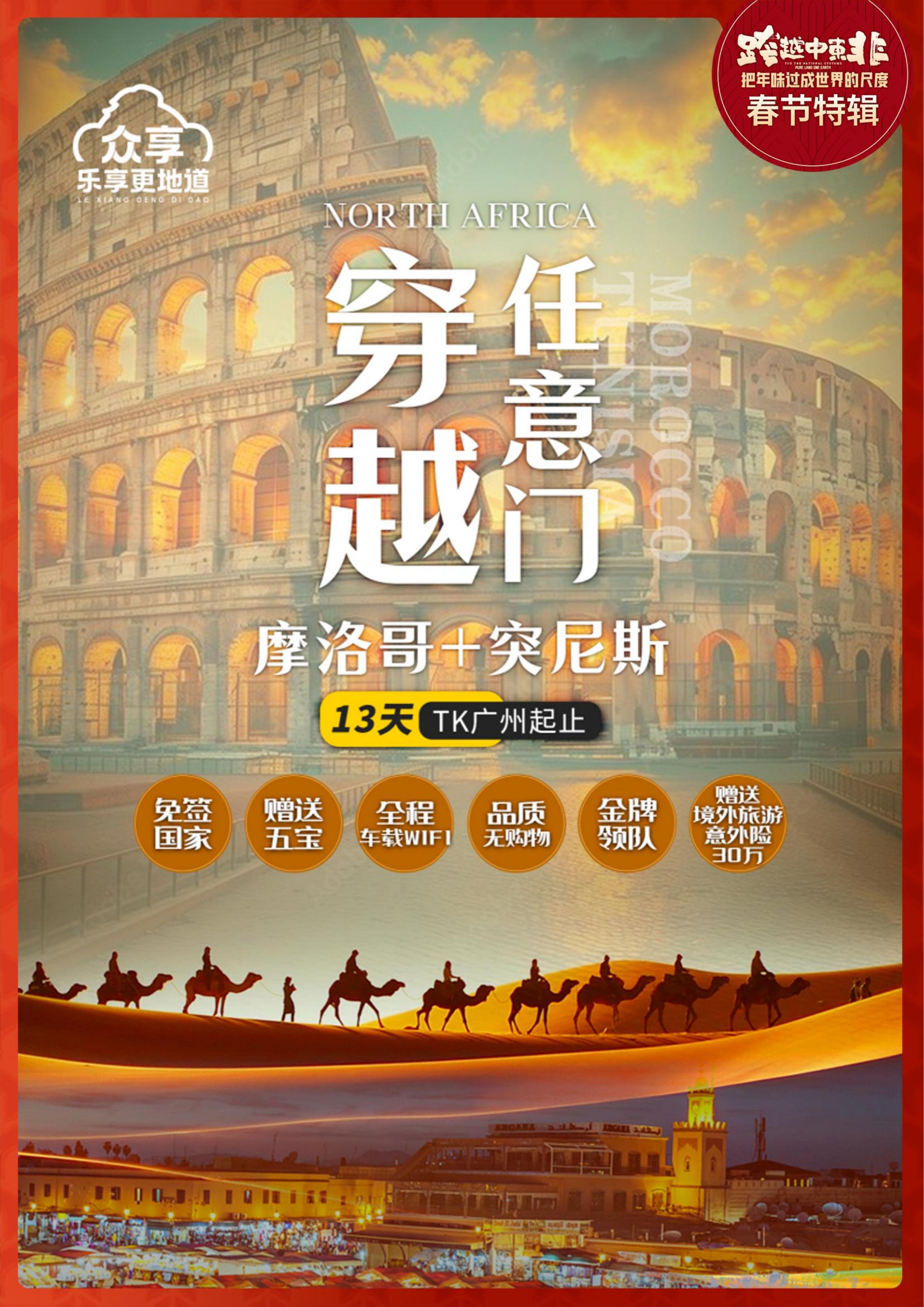 【春节】<摩洛哥+突尼斯两国联游13天>22人以内精品小团