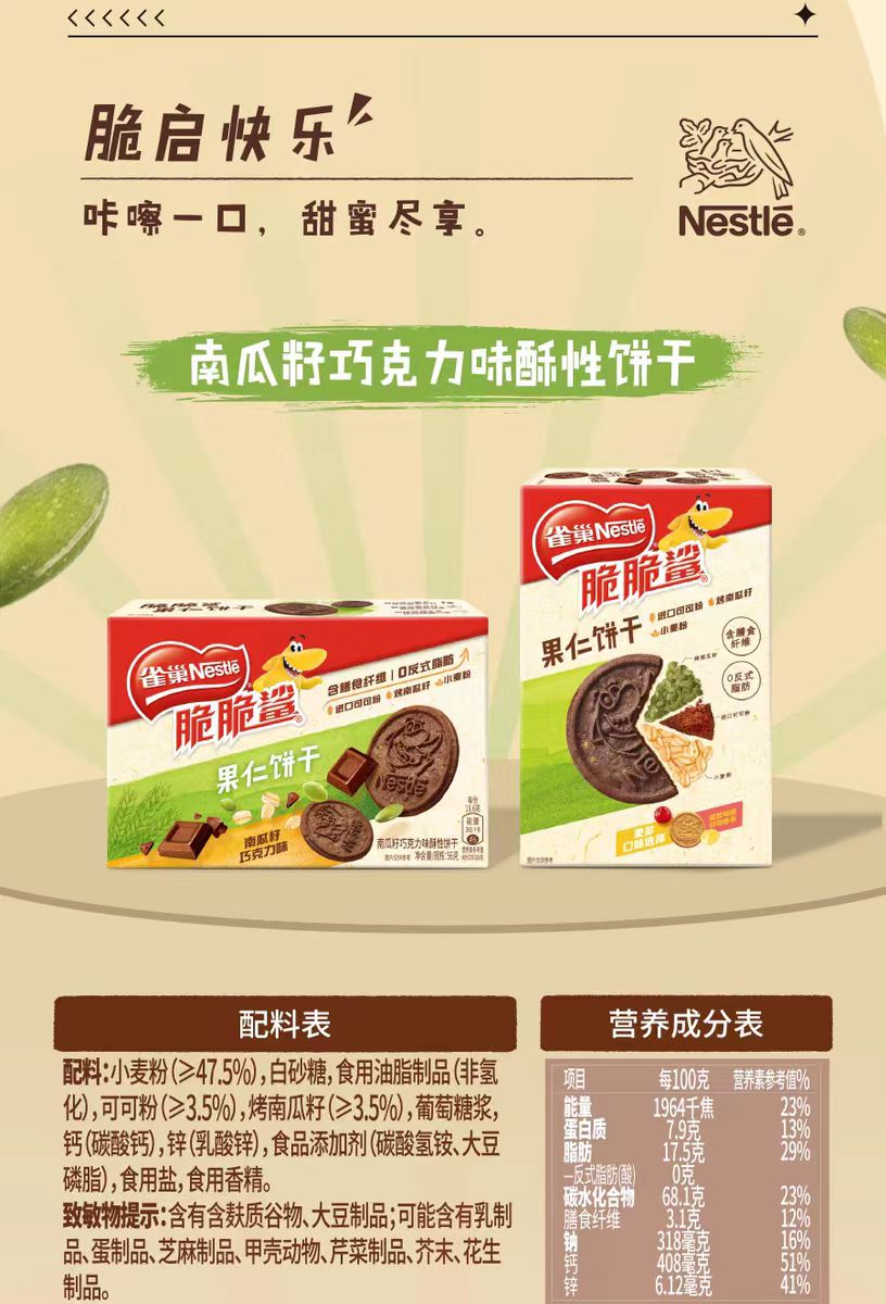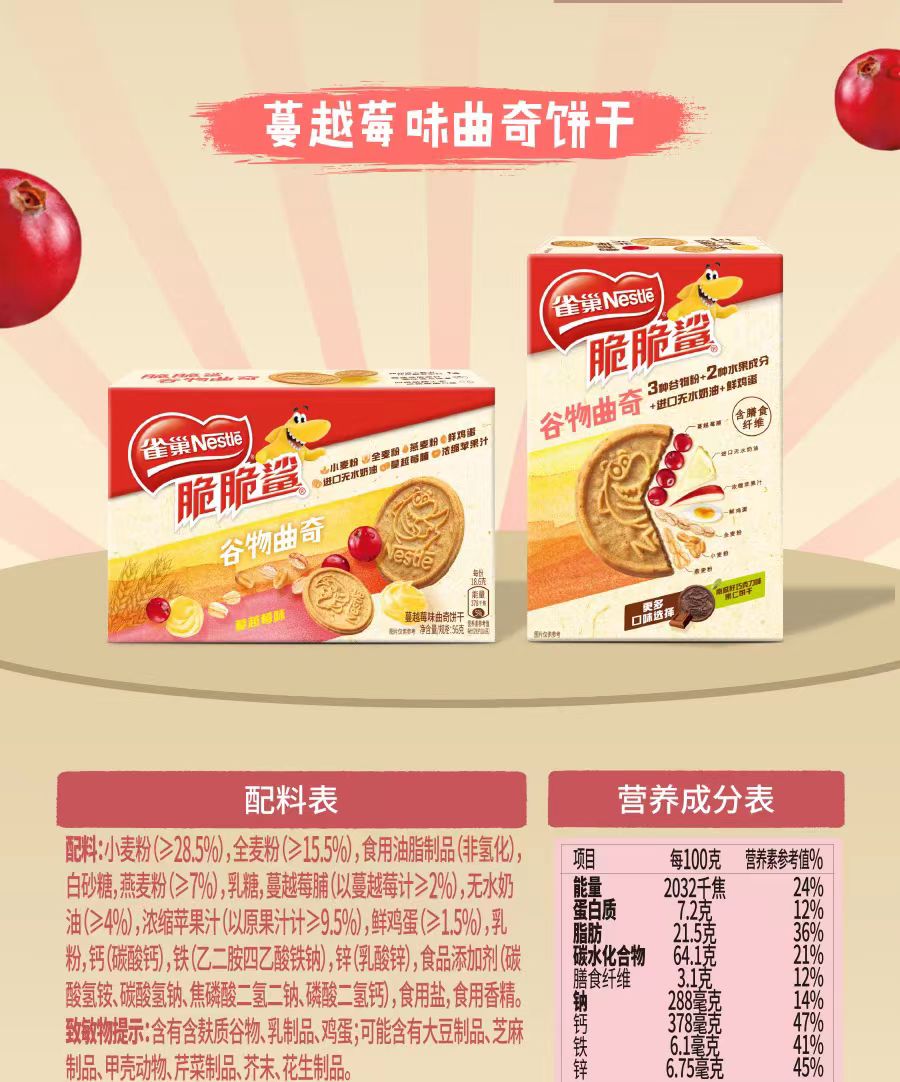 雀巢脆脆鲨南瓜子巧克力味蔓越莓味曲奇饼干56g
