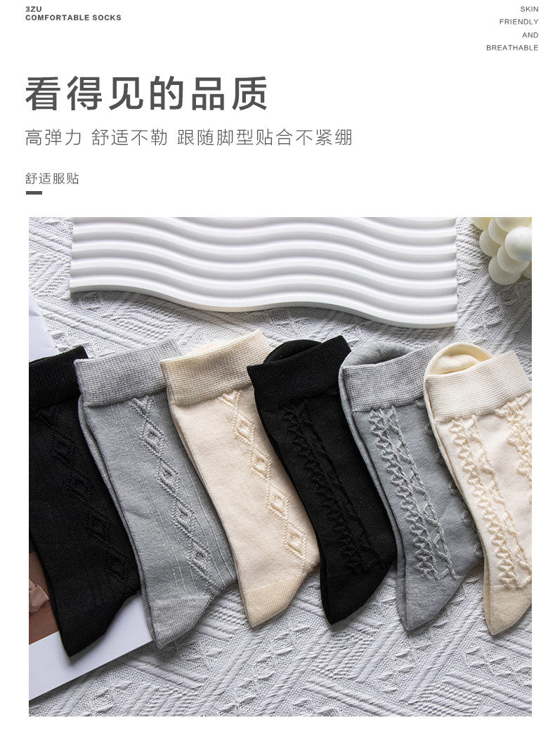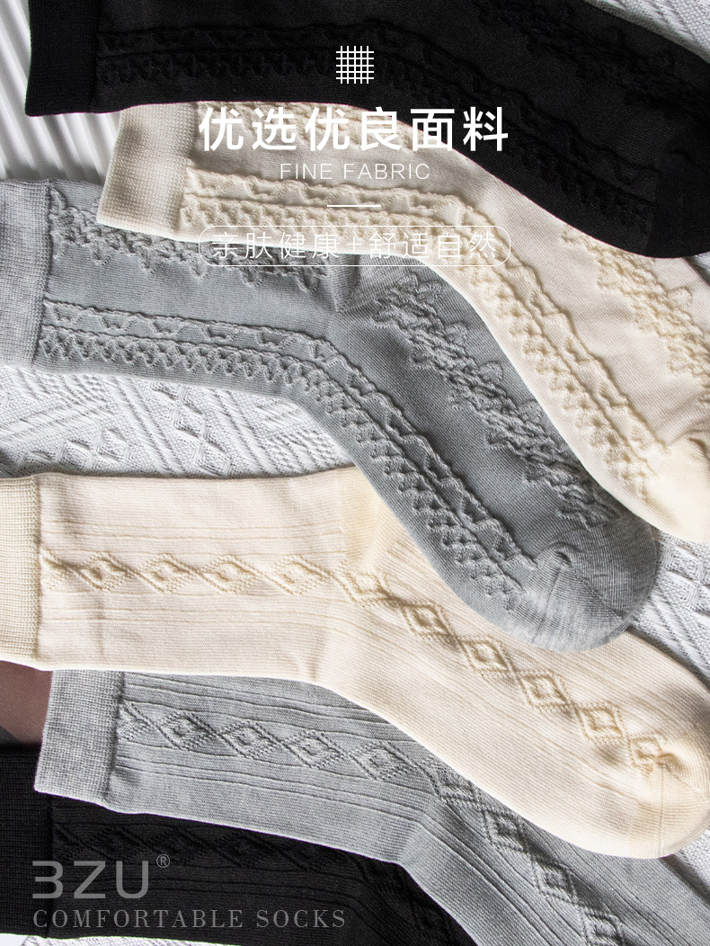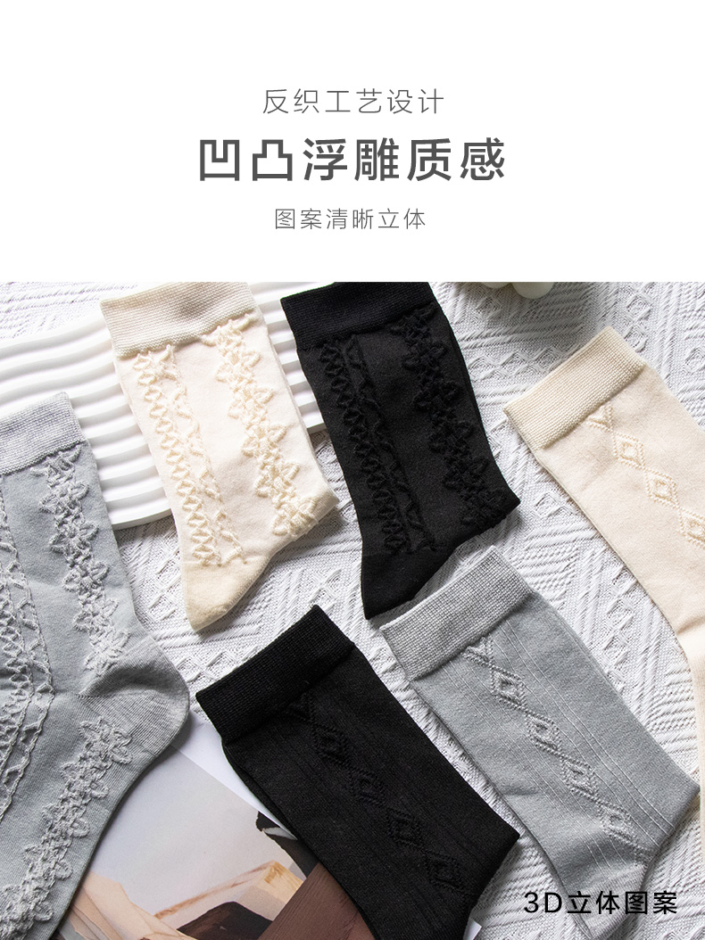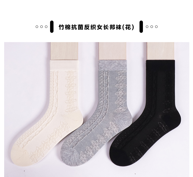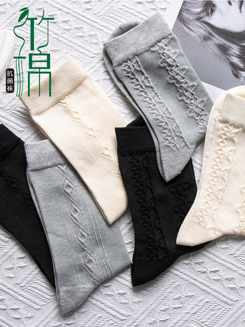 23秋冬新品女士竹棉抗菌健康环保加密编织反织浮雕短邦中邦长邦女袜少女