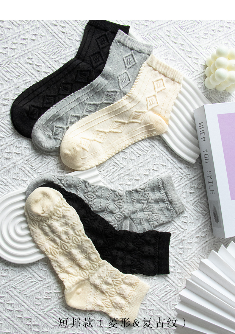5双 足装秀高棉女网眼短筒袜春夏无骨防臭高弹纯色日系吸汗女短袜