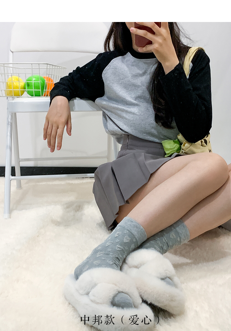 秋冬女生棉质平纹毛圈丝光羊毛春季抽条百搭小腿袜过膝袜三骨四骨袜