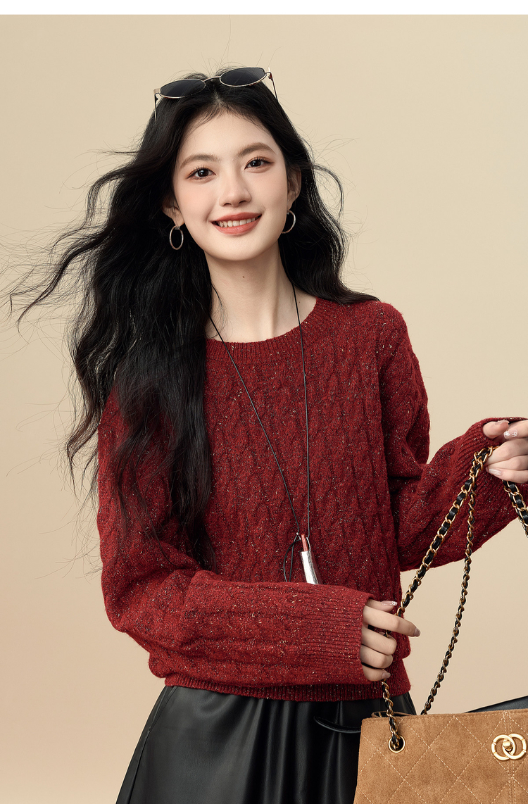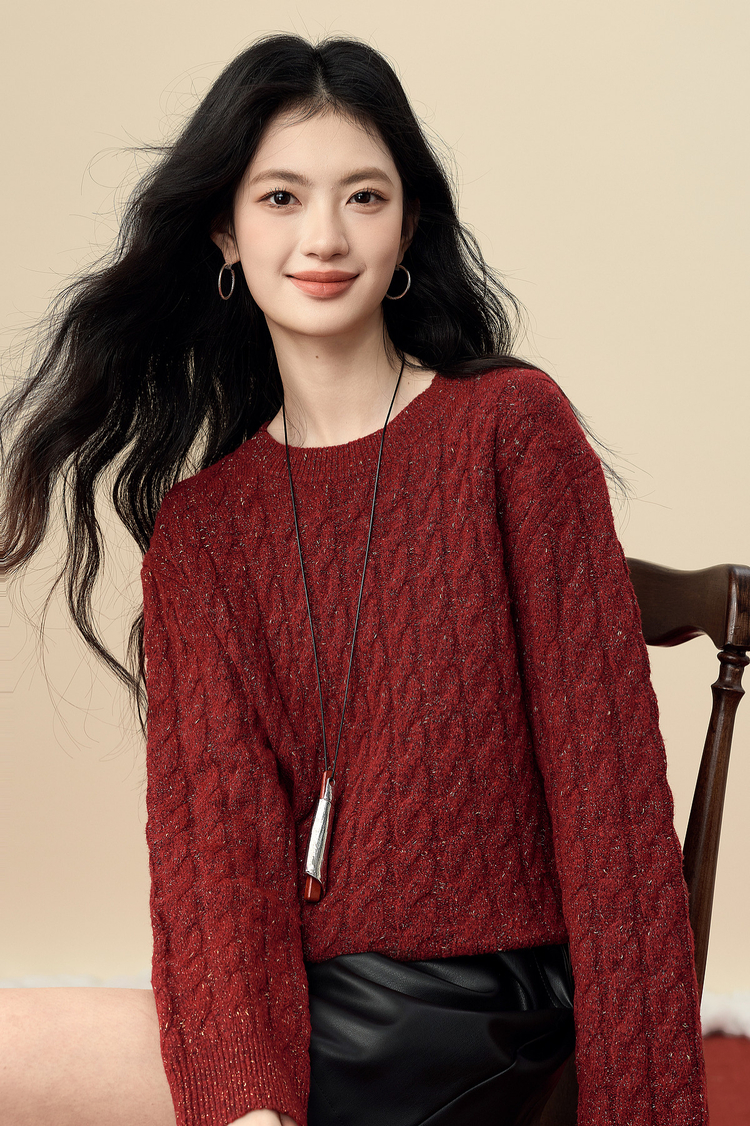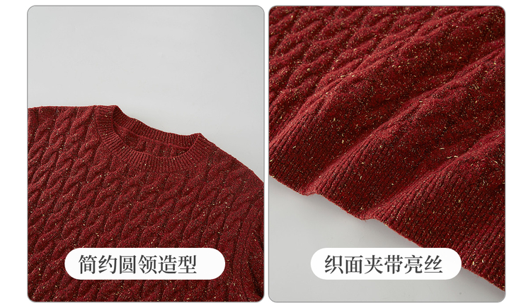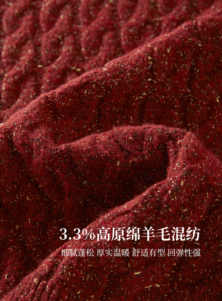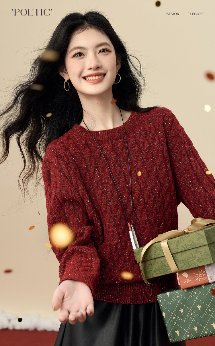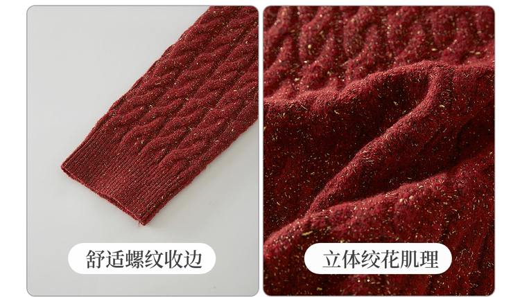 【12/17新品】熙世界安可拉红麻花厚圣诞针织毛衣女冬季套头宽松亮丝羊毛打底衫