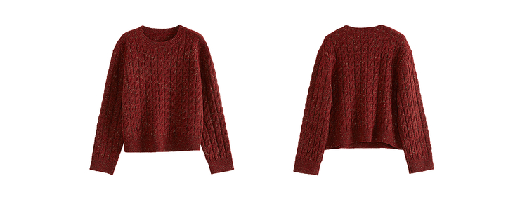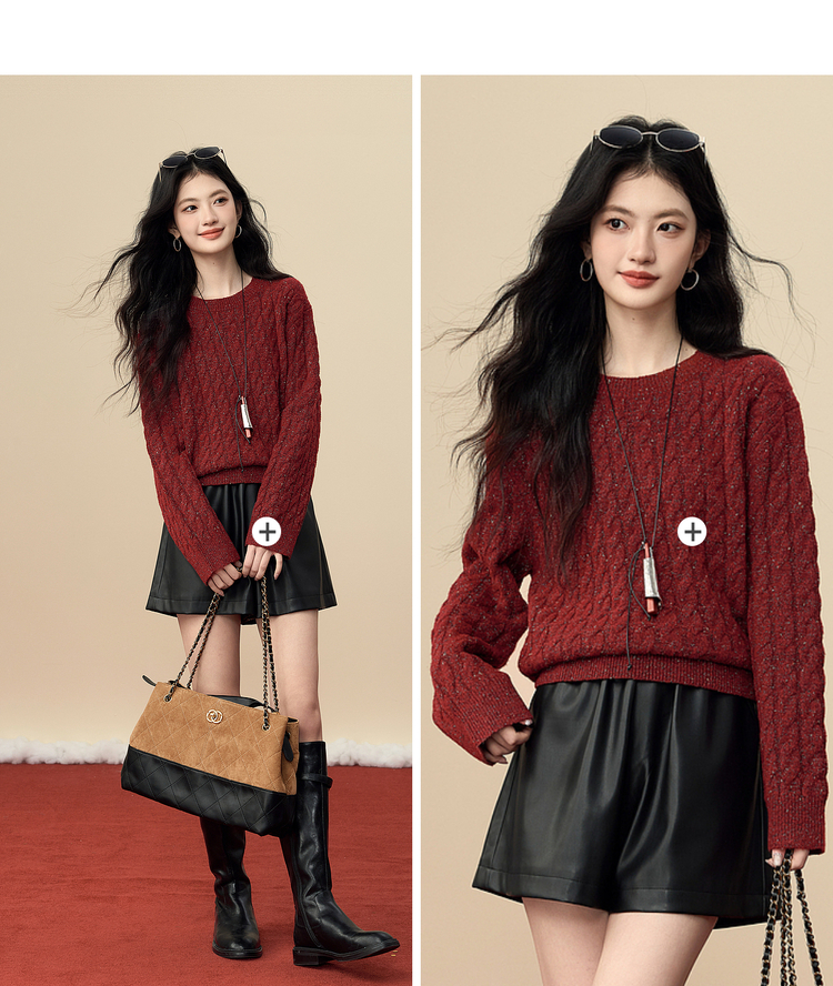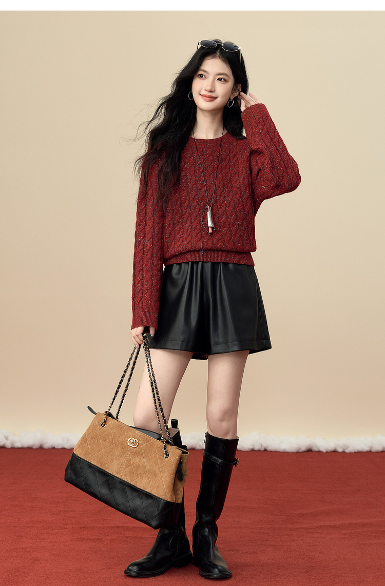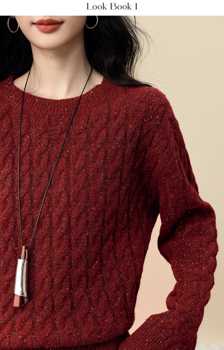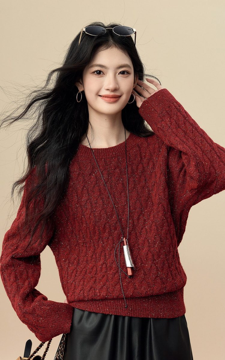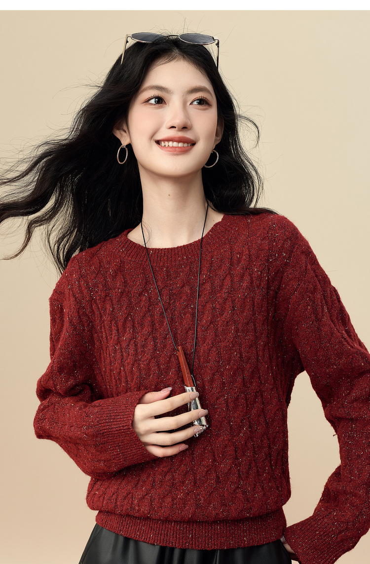 【12/17新品】熙世界安可拉红麻花厚圣诞针织毛衣女冬季套头宽松亮丝羊毛打底衫