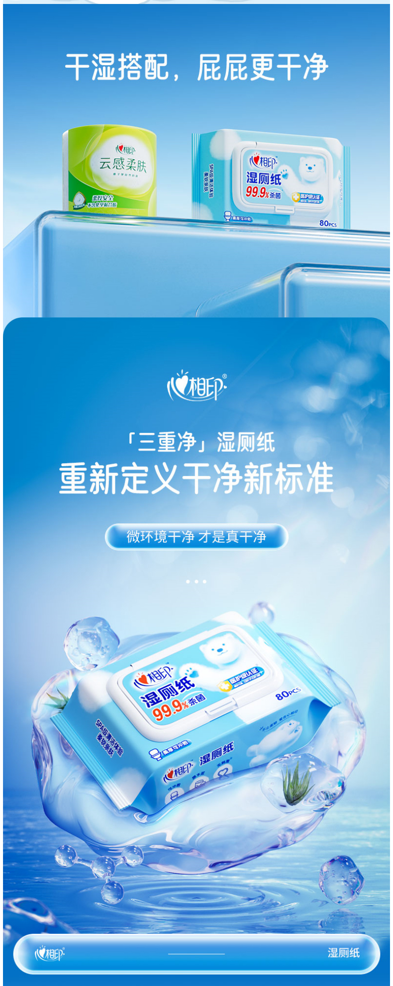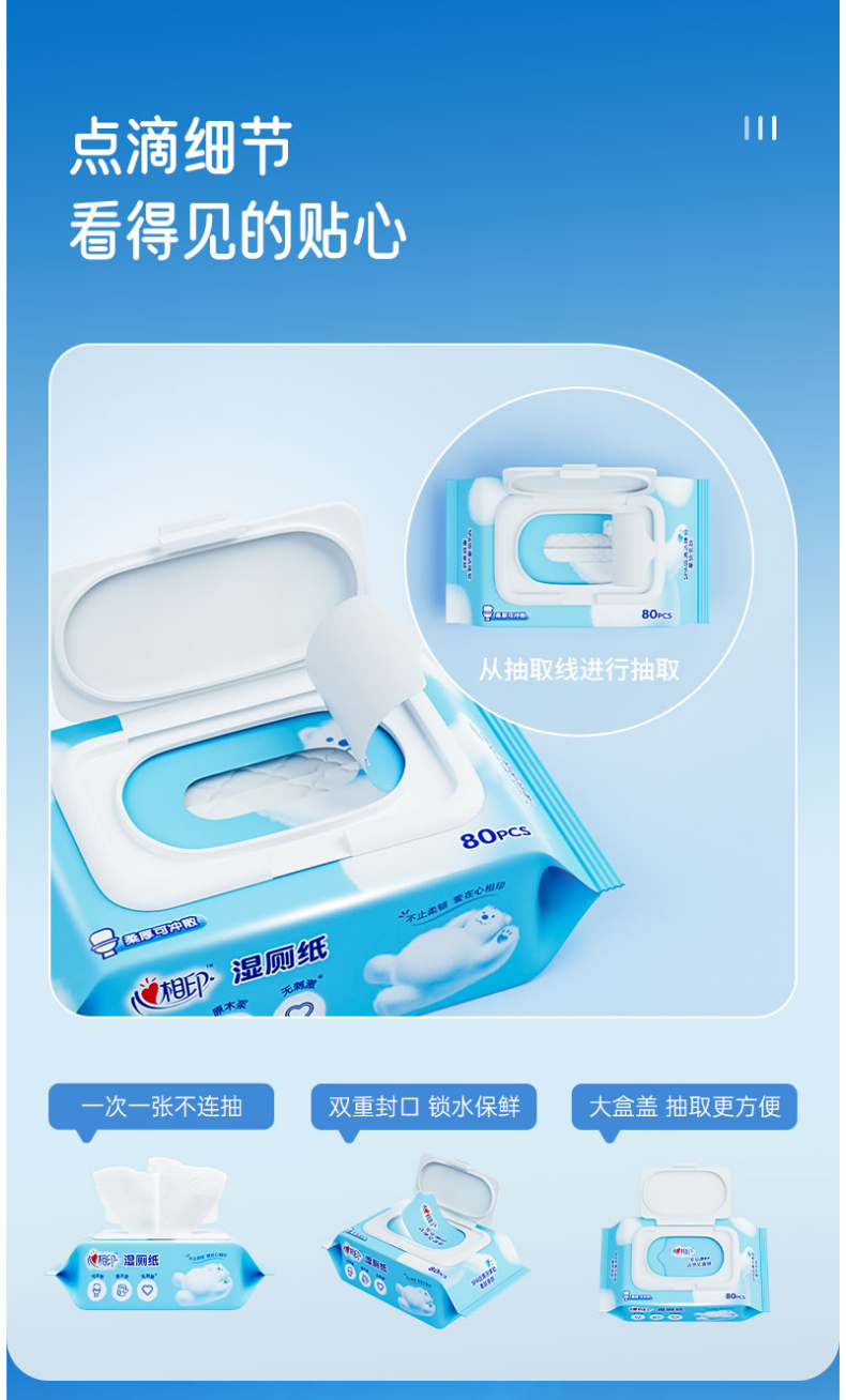 心相印 湿厕纸系列80片装湿巾5包组合装XCY080+P2