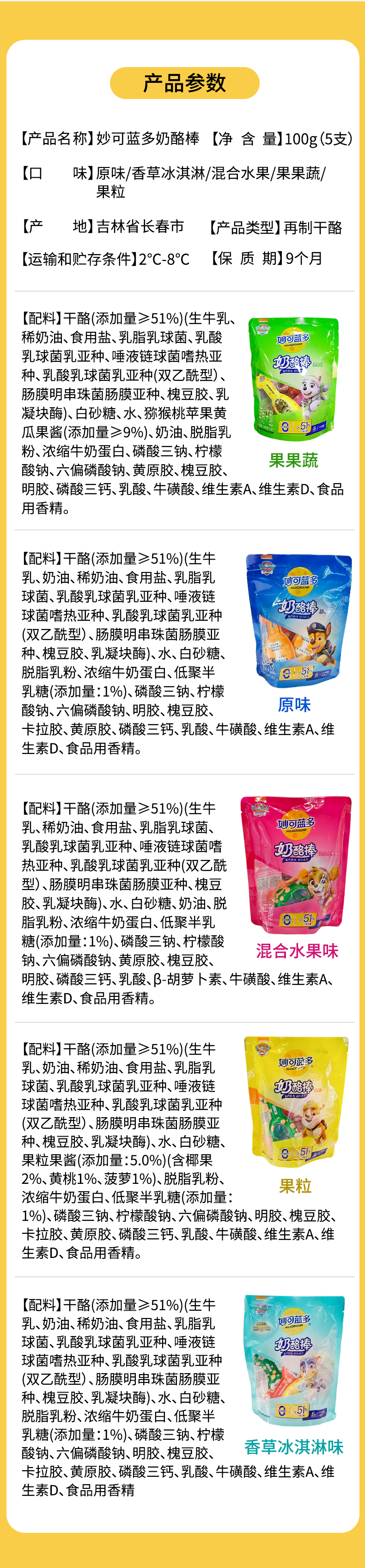 妙可蓝多奶酪棒100g【原味I 混合水果I 果果蔬I 果粒I 香草冰淇淋口味】