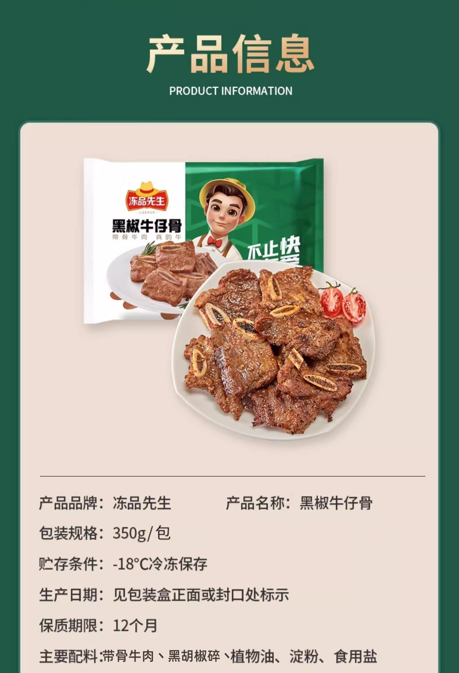 350g 安井 冻品先生 黑椒牛仔骨 快手菜 速冻调制菜肴制品