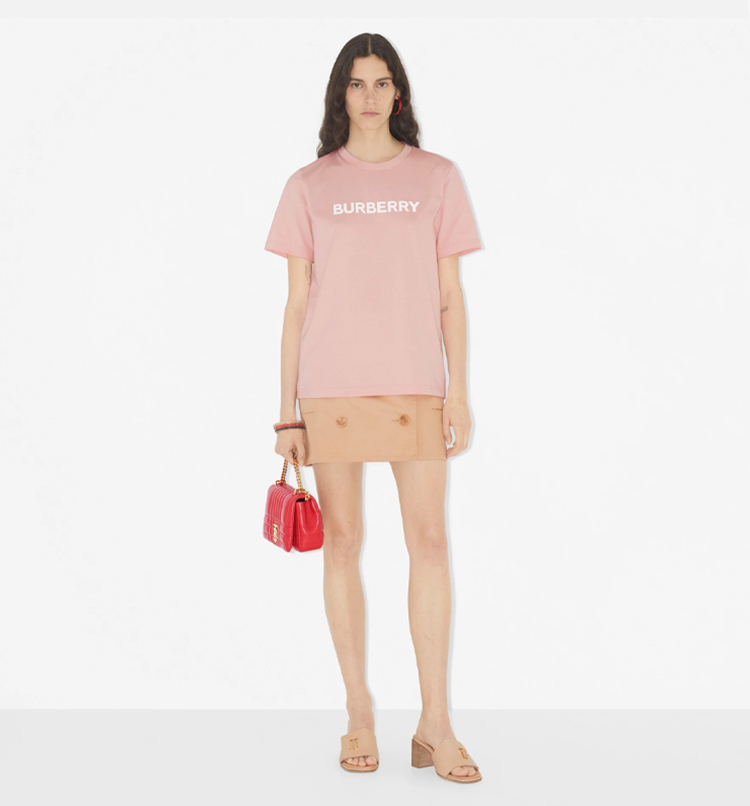 BURBERRY 巴宝莉 女士字母徽标印花棉质圆领短袖T恤 粉色 8067529 B5664