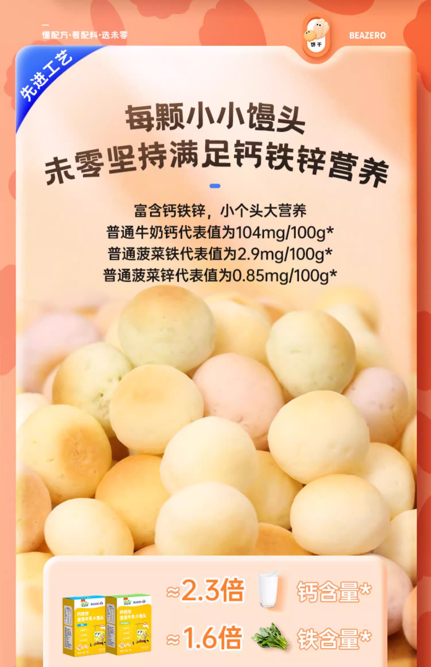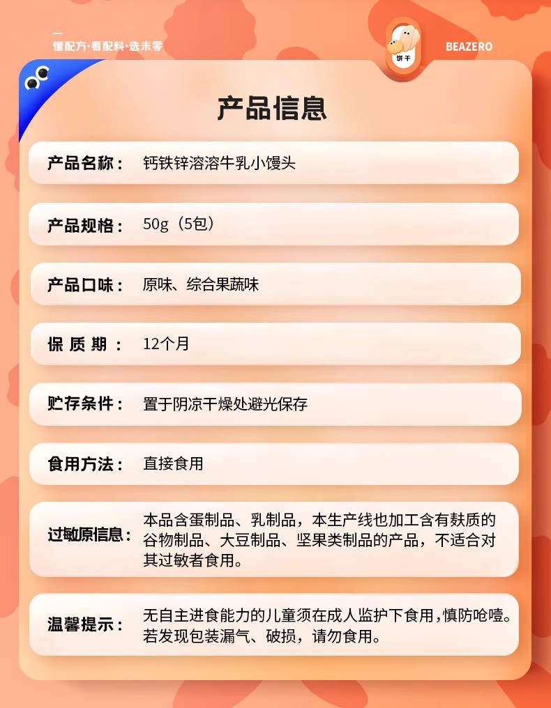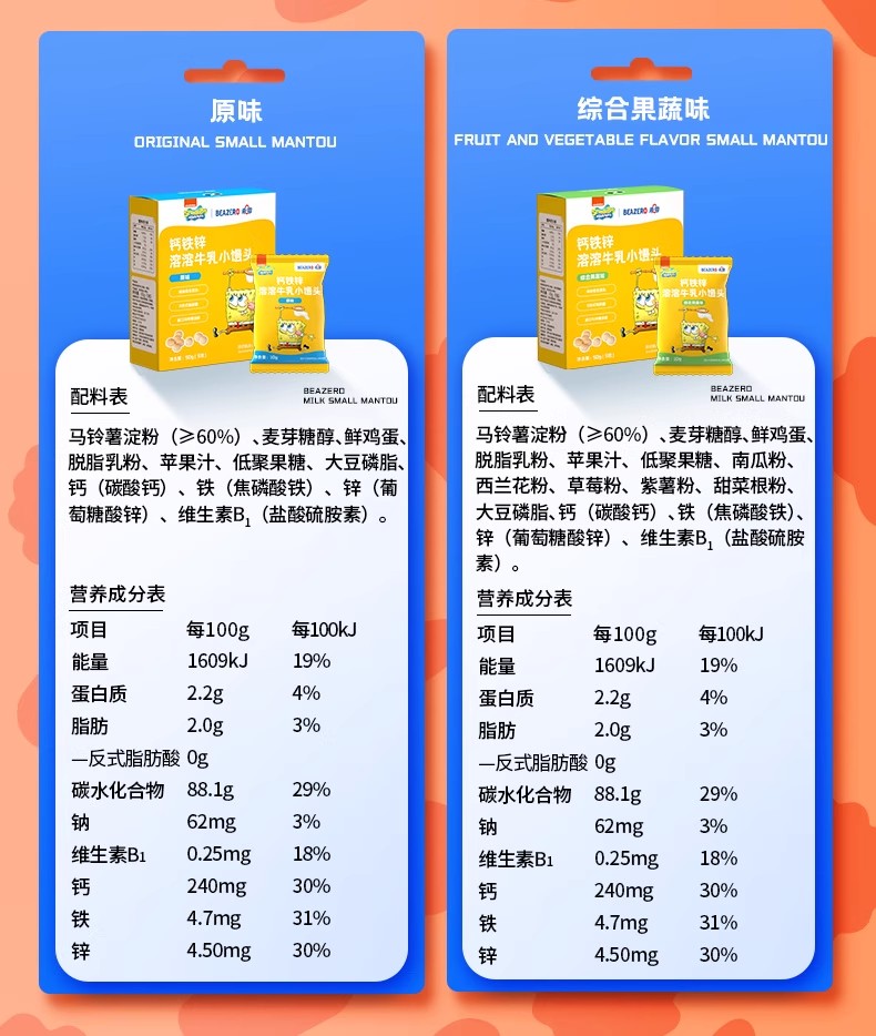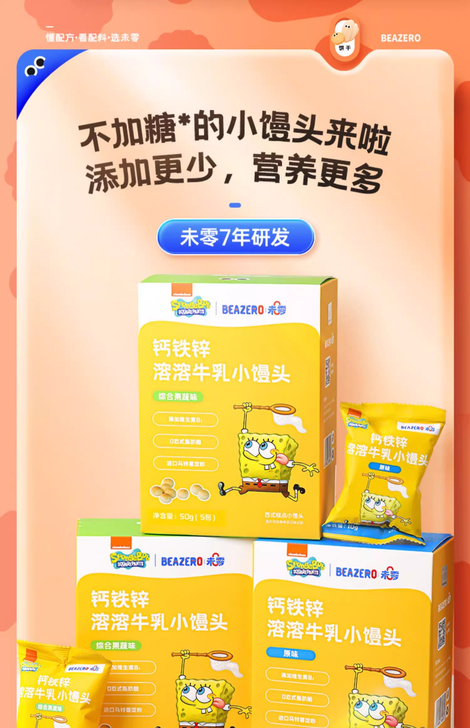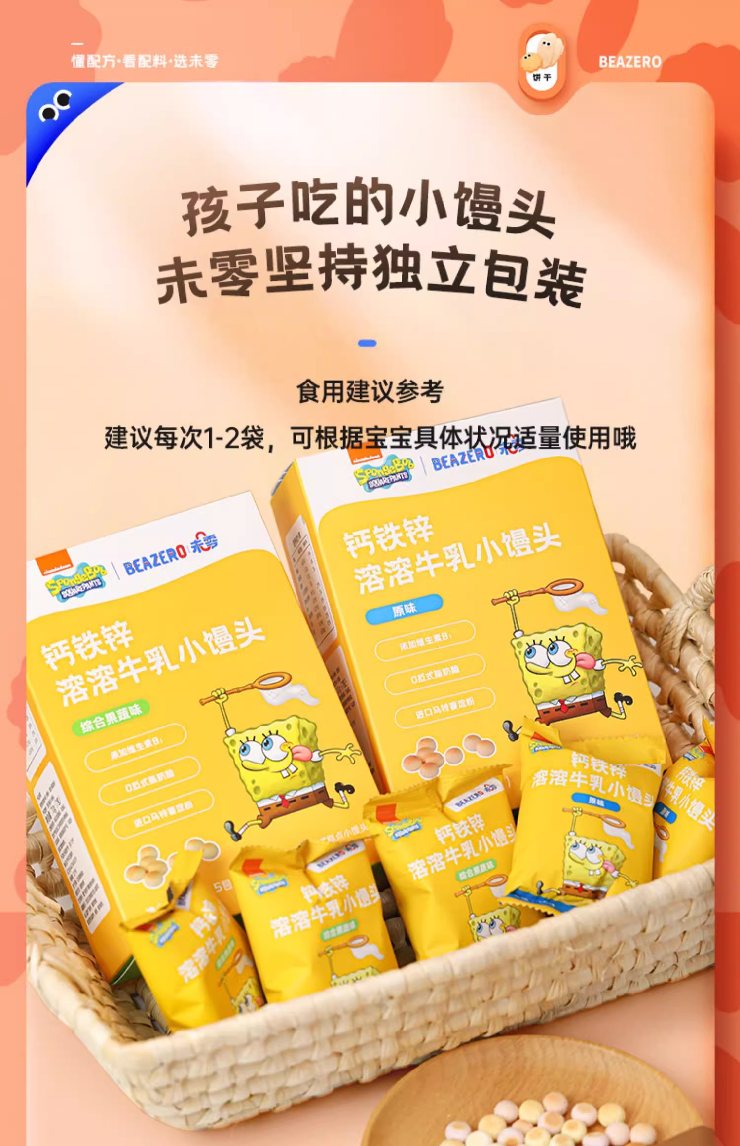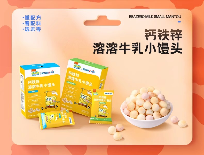 未零海绵宝宝钙铁锌溶溶牛乳小馒头50g