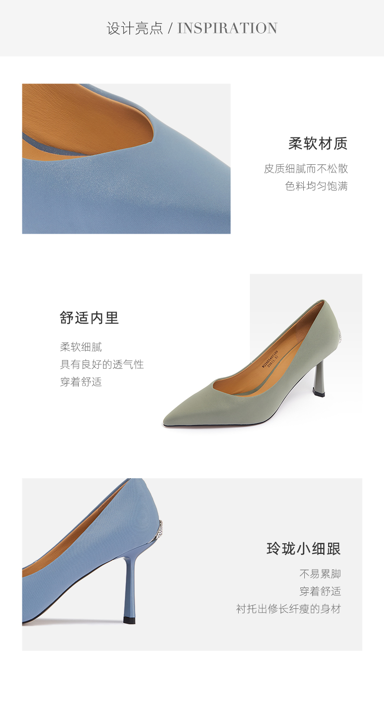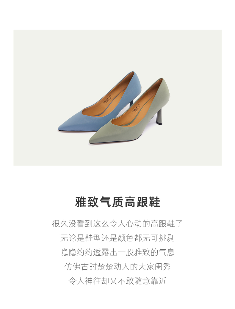 westory高级感法式高跟鞋尖头真皮女鞋细跟简约百搭单鞋浅口W22AE54071