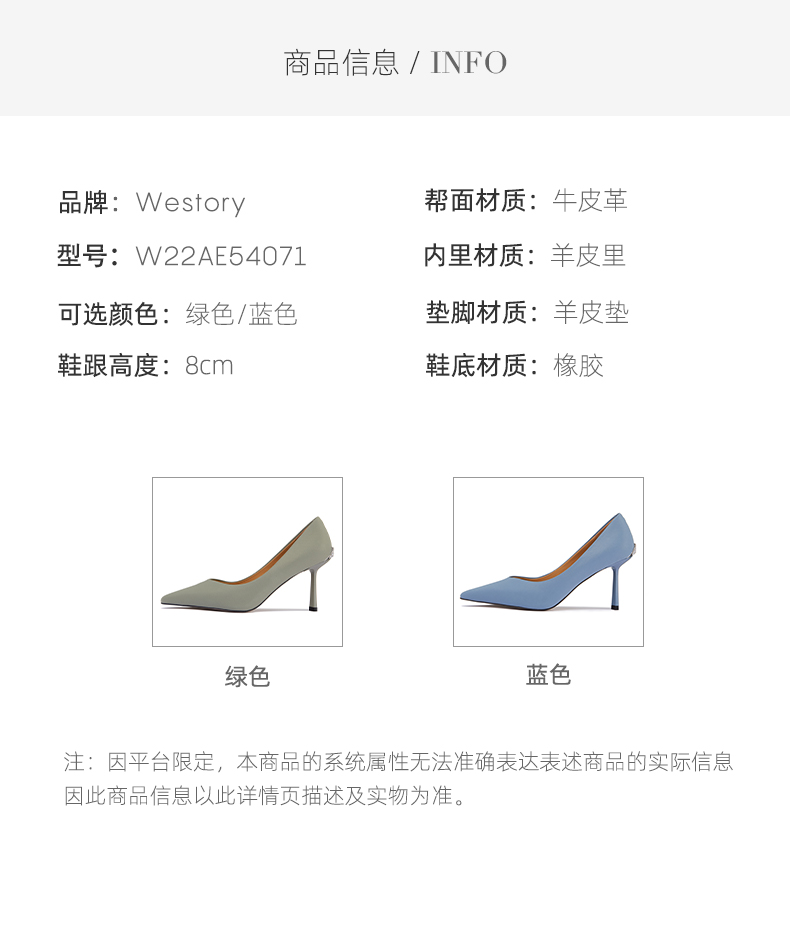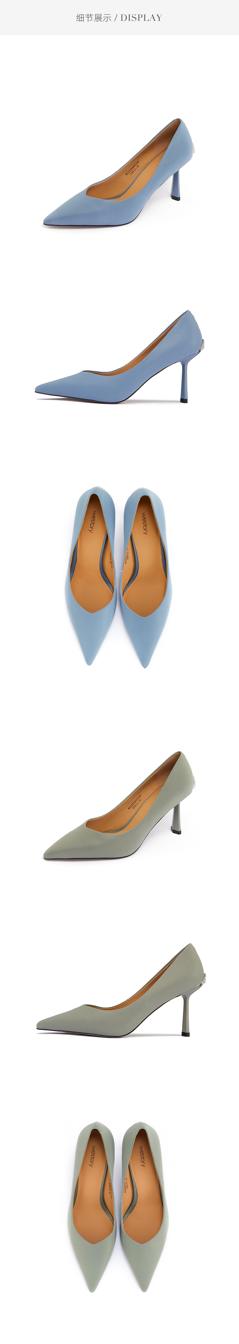 westory通勤高跟鞋磨砂小众设计感单鞋细跟尖头职场ol女鞋纯色W22AE53991