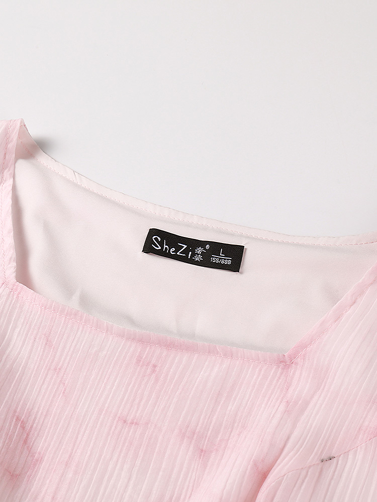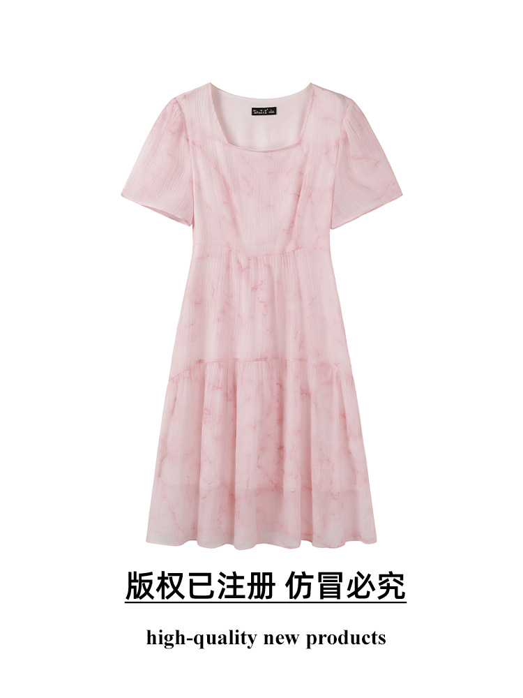 奢姿大码女装2025夏季减龄清冷遮肉印花连衣裙胖妹妹方领时尚裙子9952858209