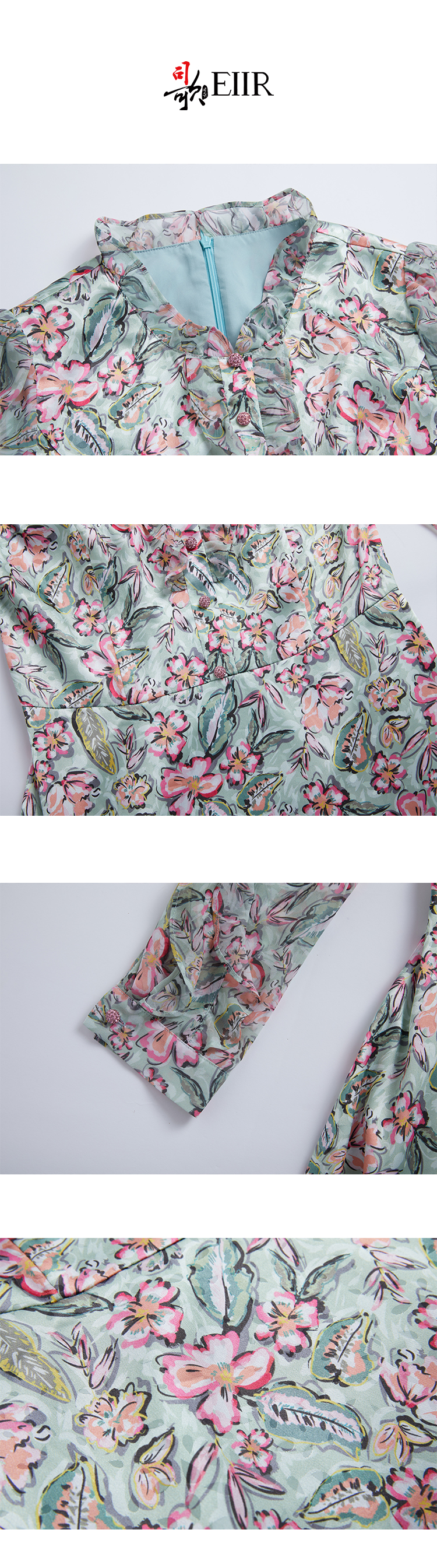 EIIR司歌修身泡泡袖V领扣扭衬衫端庄气质上衣ET881350