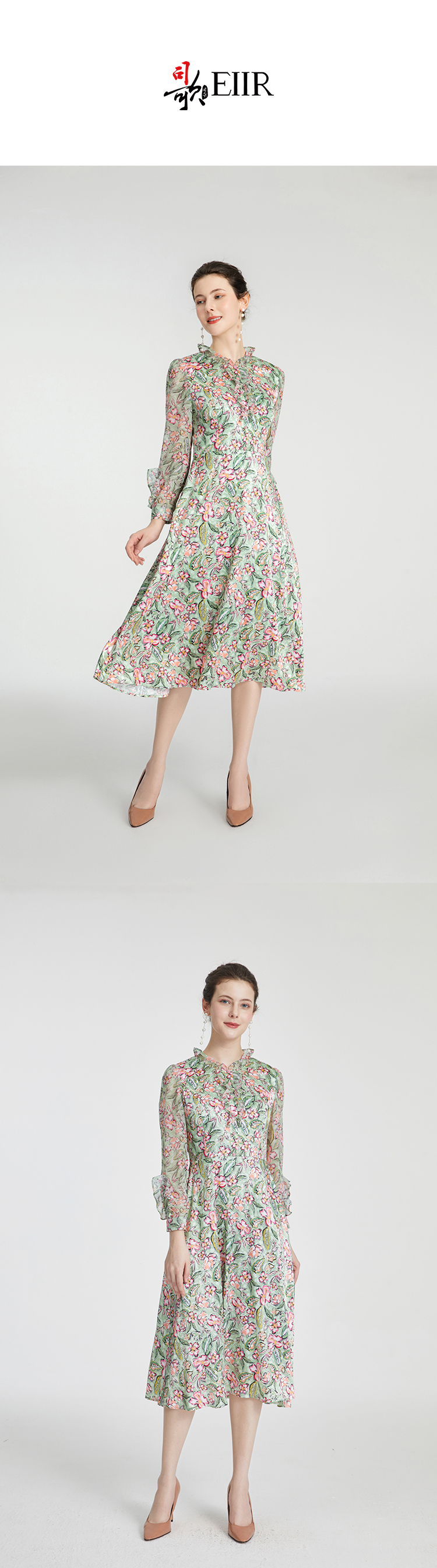 司歌棉短袖连衣裙印花翻领优雅衬衫EA871135