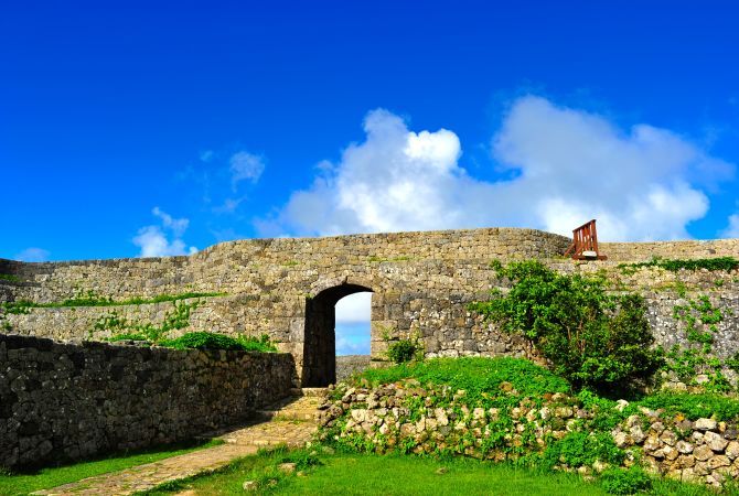 12 世纪时,冲绳各地建立起独裁政权,进而出现了名为"御城"的城堡式建筑。这种建筑不同于入选世界遗产地的姬路城,更像是被坚固的石墙所包围的堡垒。这些政权在14世纪合并成三个县,并最终在1429年建立了琉球王国。当时,琉球王国的象征首里城成为了唯一的御城。