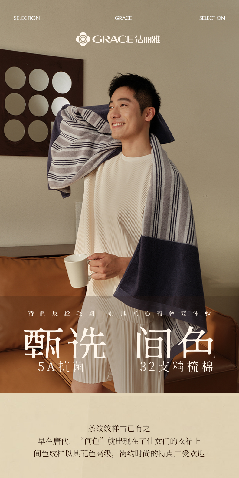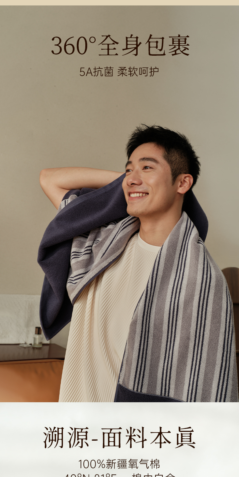 【棉疆溯源】洁丽雅全棉5A抗菌毛浴巾海的方向新疆棉柔软亲肤柔软