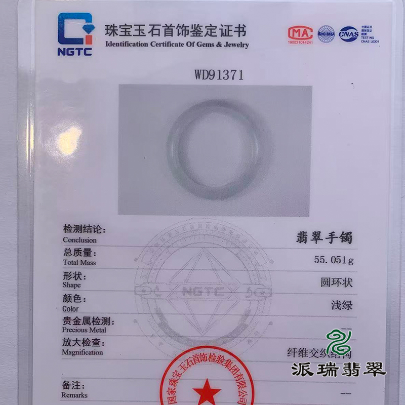派瑞翡翠 翡翠手镯 糯种 浅绿