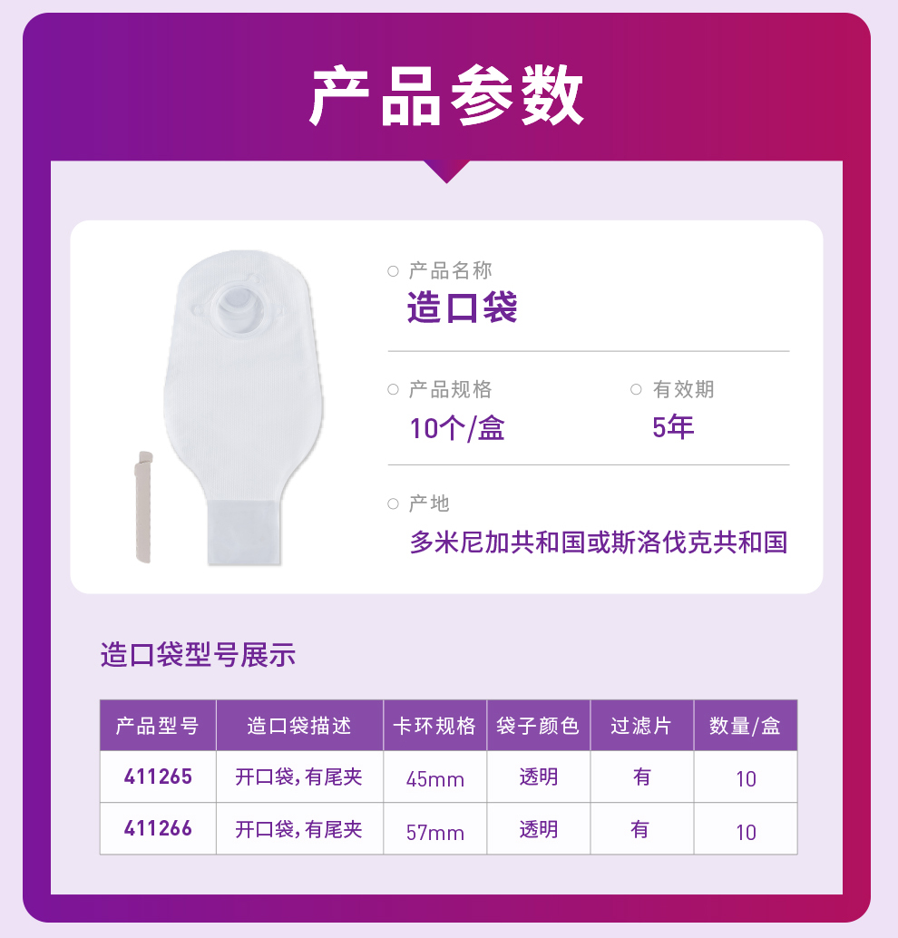 CONVATEC康维德舒洁两件式开口造口袋有尾夹透明造口袋411265 411266