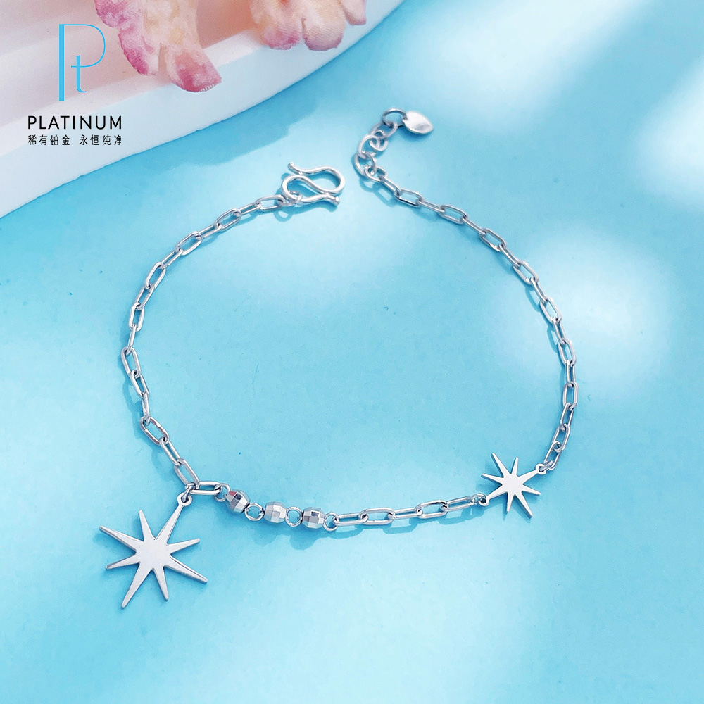 【限时8.8折】【线上铂金馆】PT950 #520快乐 #清新 【国际铂金协会】铂金璀璨爱恋耀眼星芒方环调节手链(ACPTSL00001)预售产品下单后不退款不退货不换货不补差价)