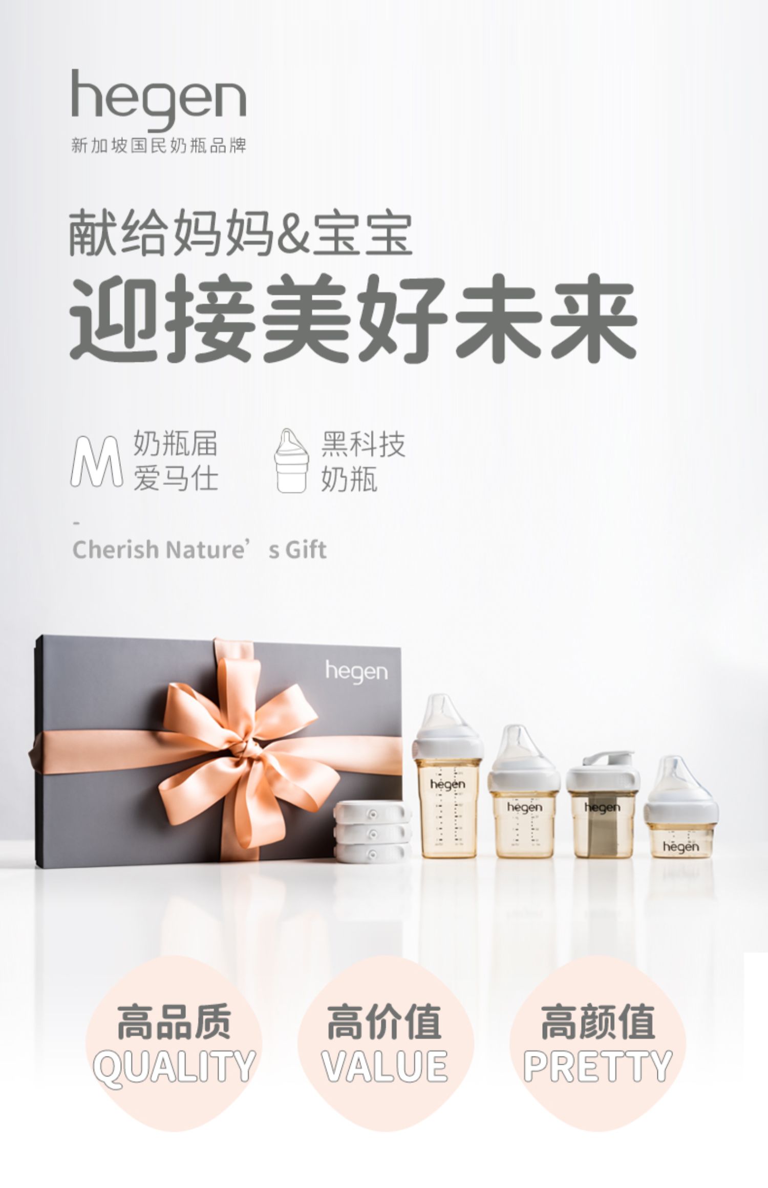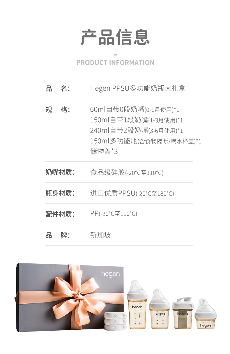 新加坡 Hegen 初乳礼盒 | 原装进口新生儿礼盒全家福 PPSU婴儿多功能奶瓶礼盒(60mL+150mL+240mL奶瓶+隔离式储存罐+储存盖)