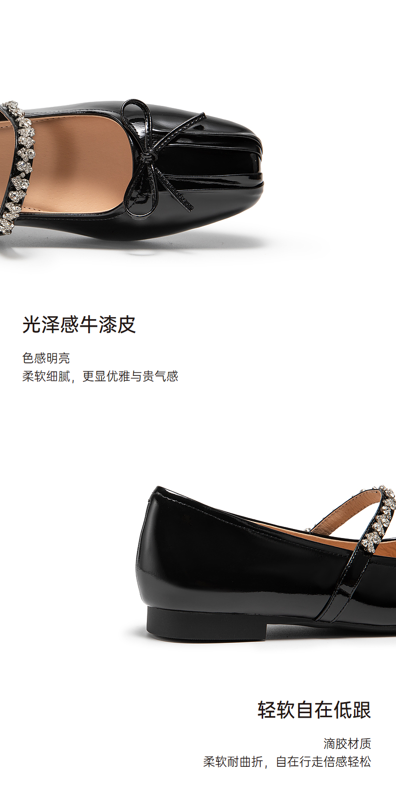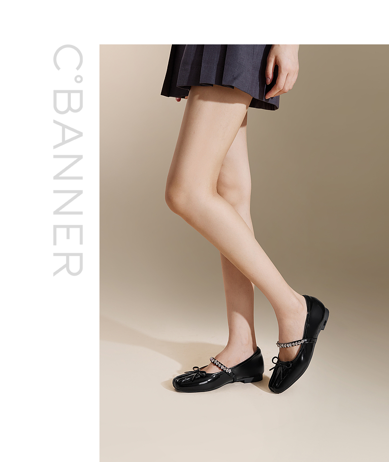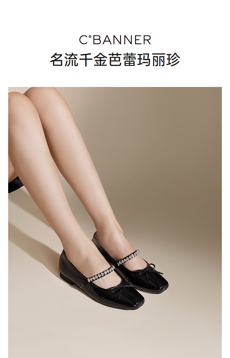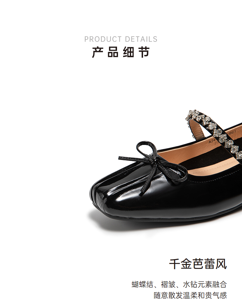 千百度牛漆皮时尚芭蕾舞鞋女秋季低跟浅口玛丽珍晚晚单鞋A24451021