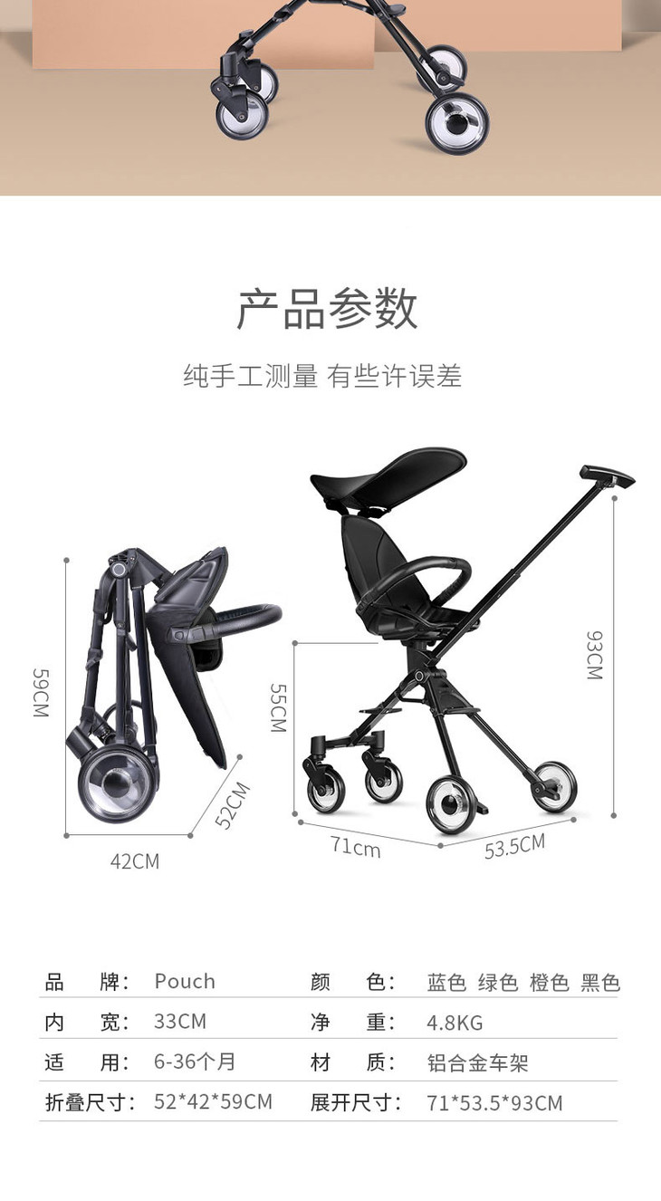 Pouch 新品溜娃神器轻便避震婴儿推车A03