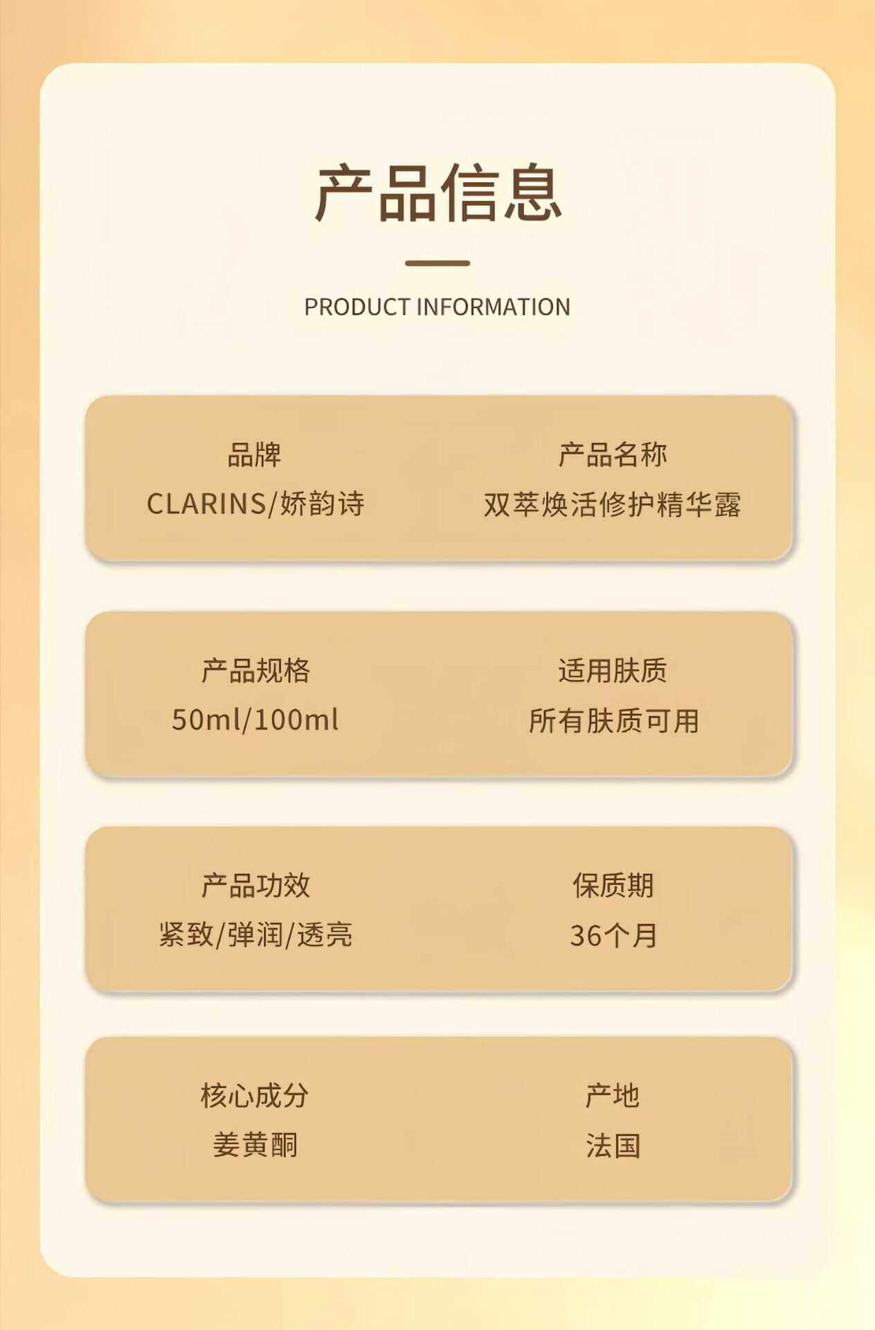 [礼盒装 赠送眼霜20g] 娇韵诗双萃赋活修护精华露50m/100ml 面部熬夜提拉紧致滋润