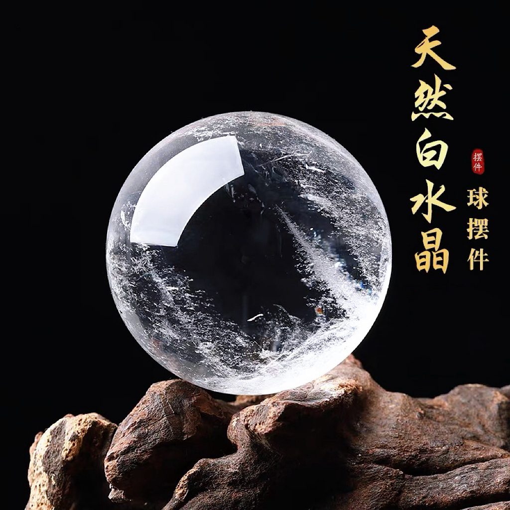 天语龙吟天然白水晶球摆件招财白色转运球乔迁搬家送礼客厅玄关家居摆