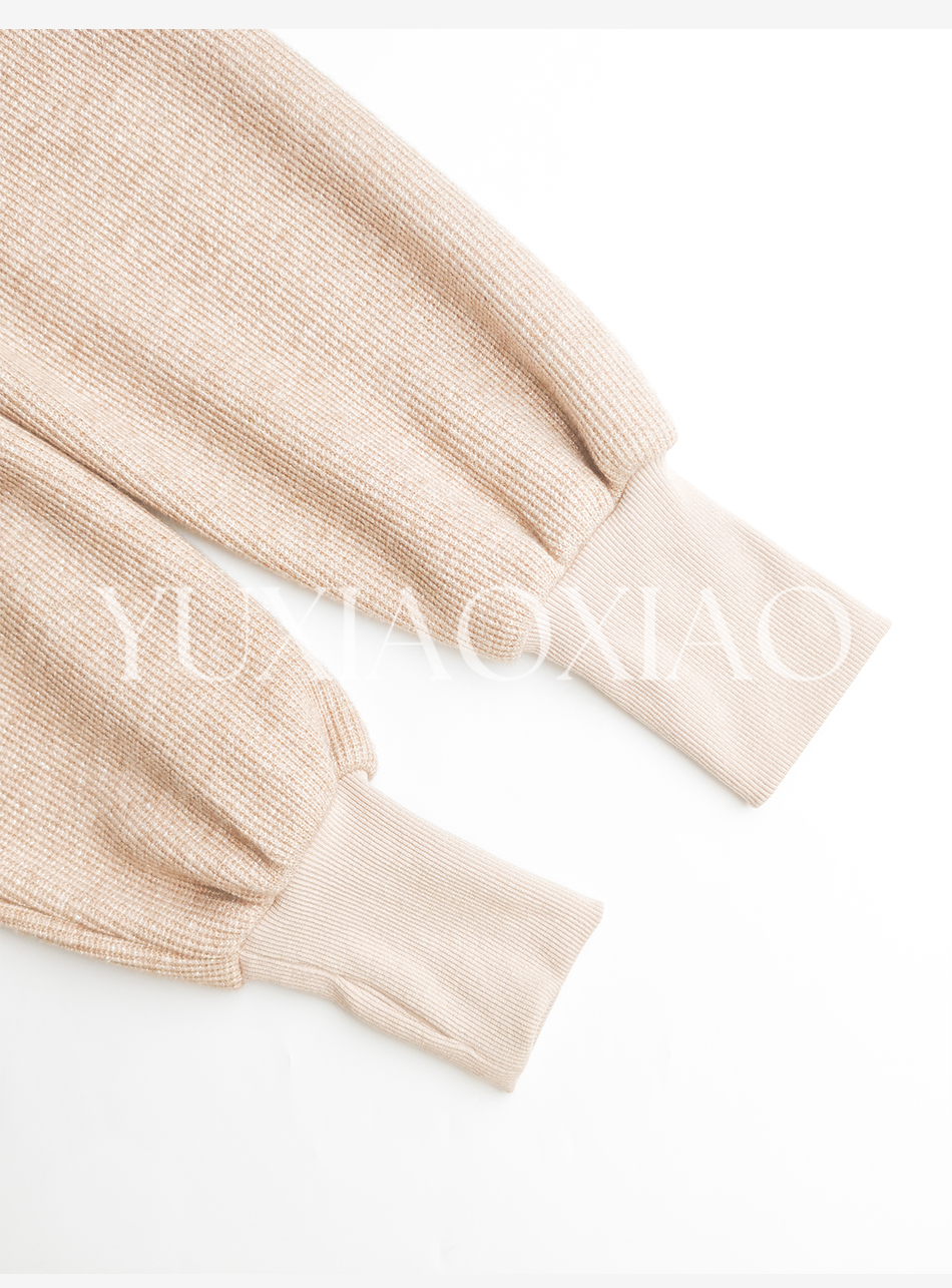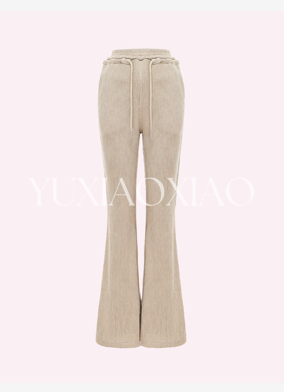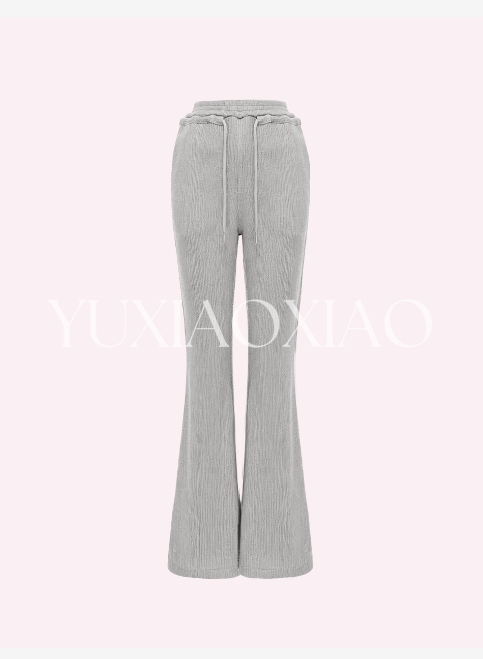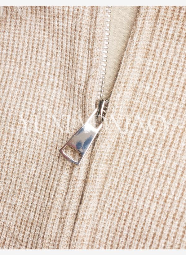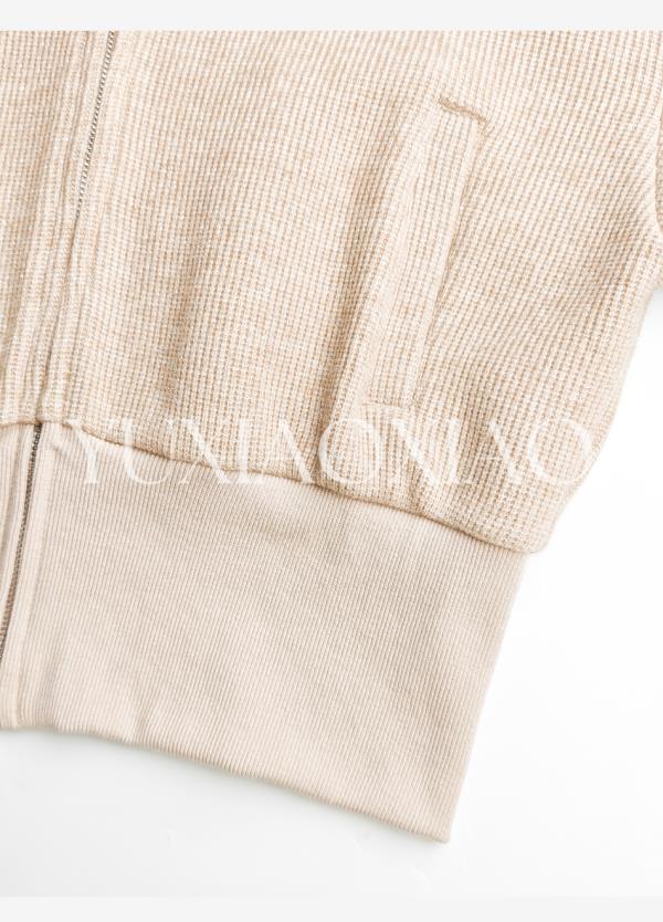 余潇潇【长岛假期】可拆毛领双拉链亮丝短款针织连帽外套&微喇长裤