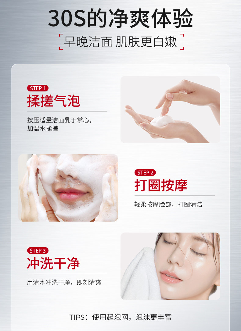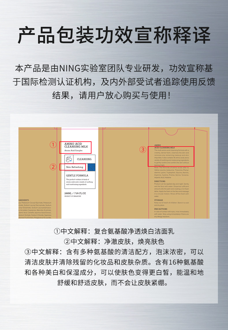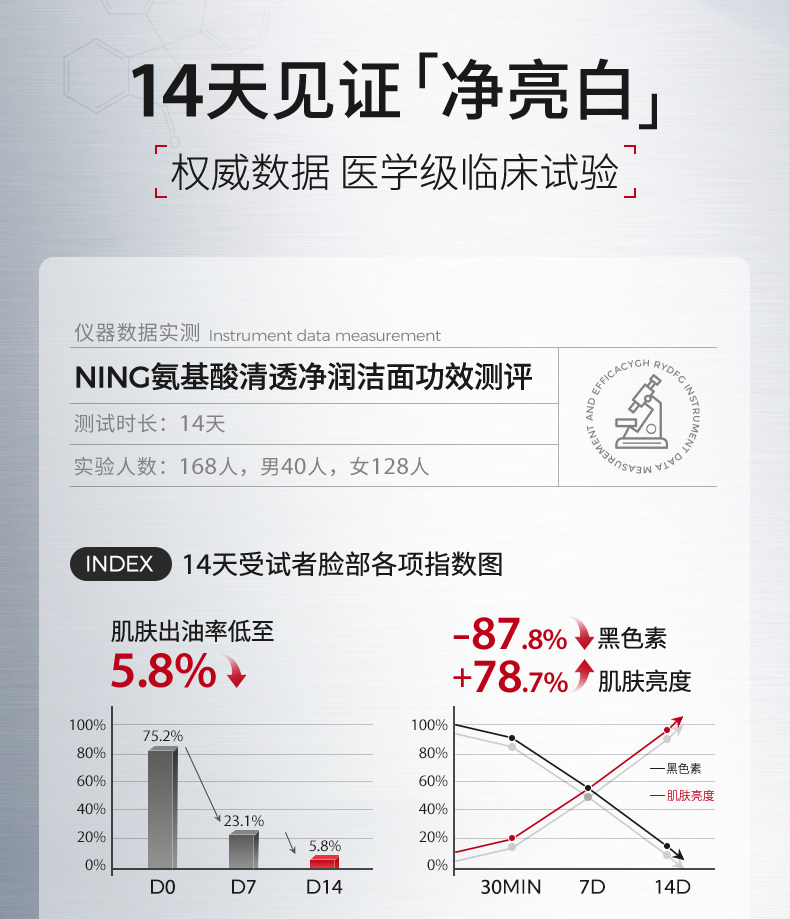 NING美氨基酸白洗面奶控油深层清洁收缩毛孔淡提亮斑男女士洁面乳