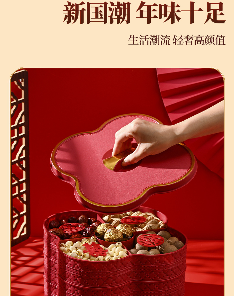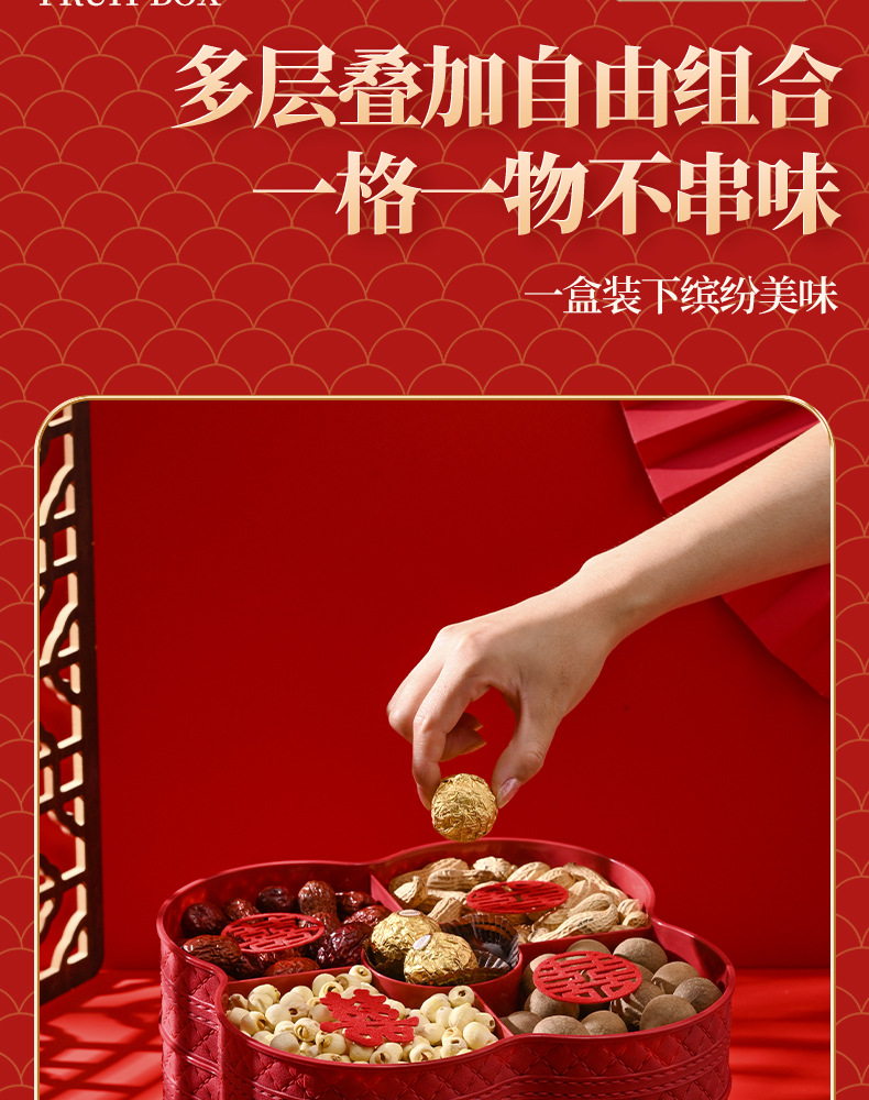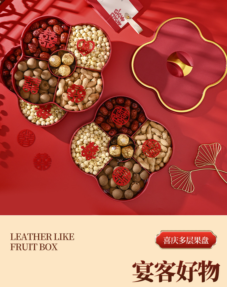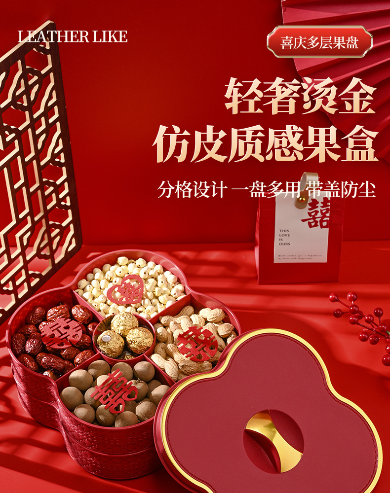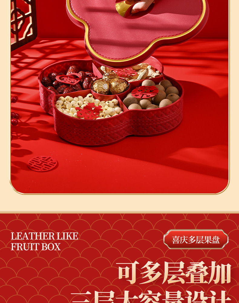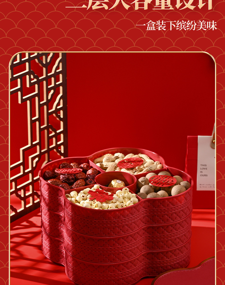【婚礼果盘】结婚喜糖盘 分格多层 客厅新年新居干果盒 乔迁中国红水果盘