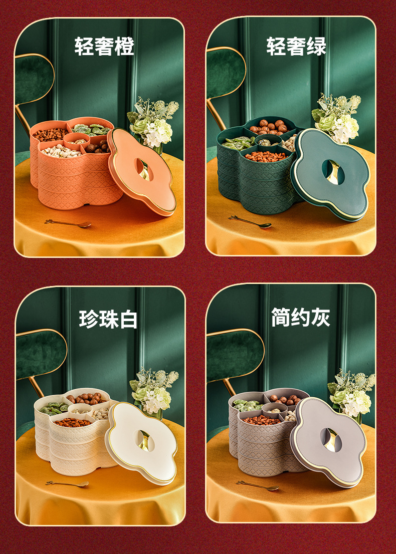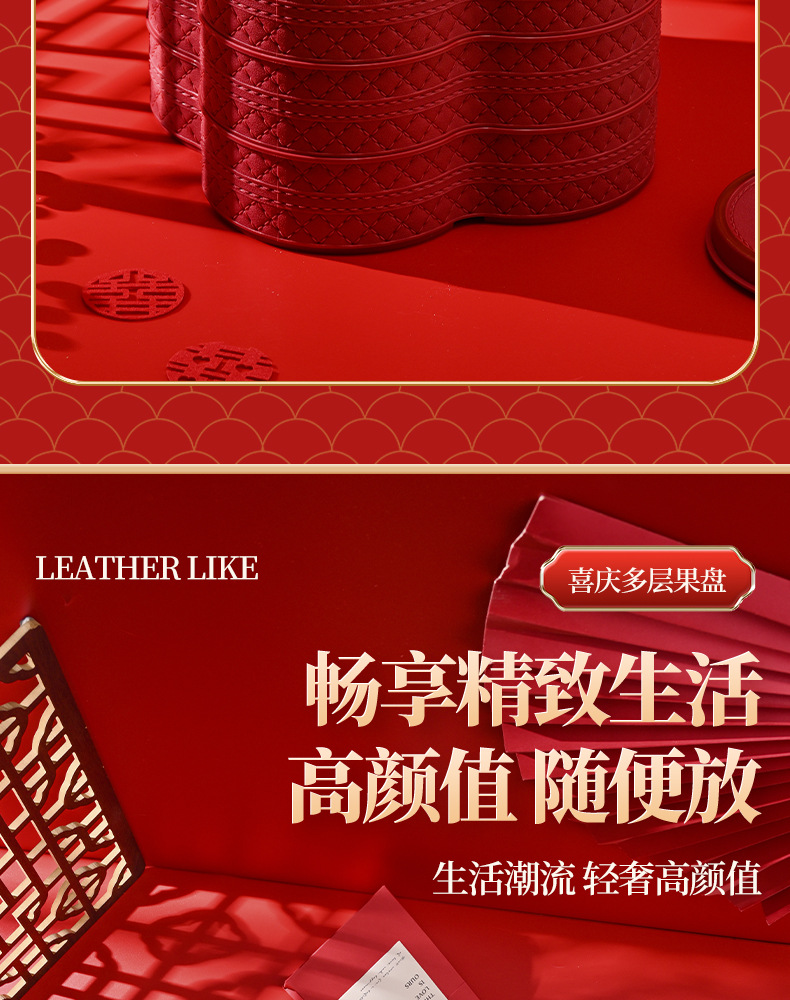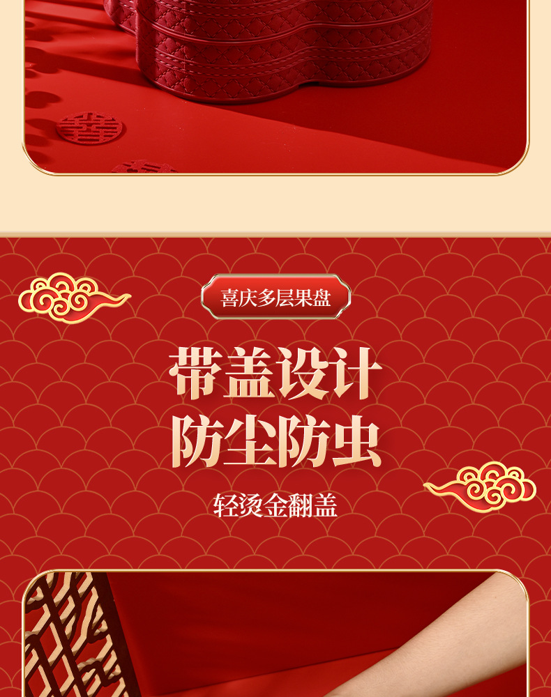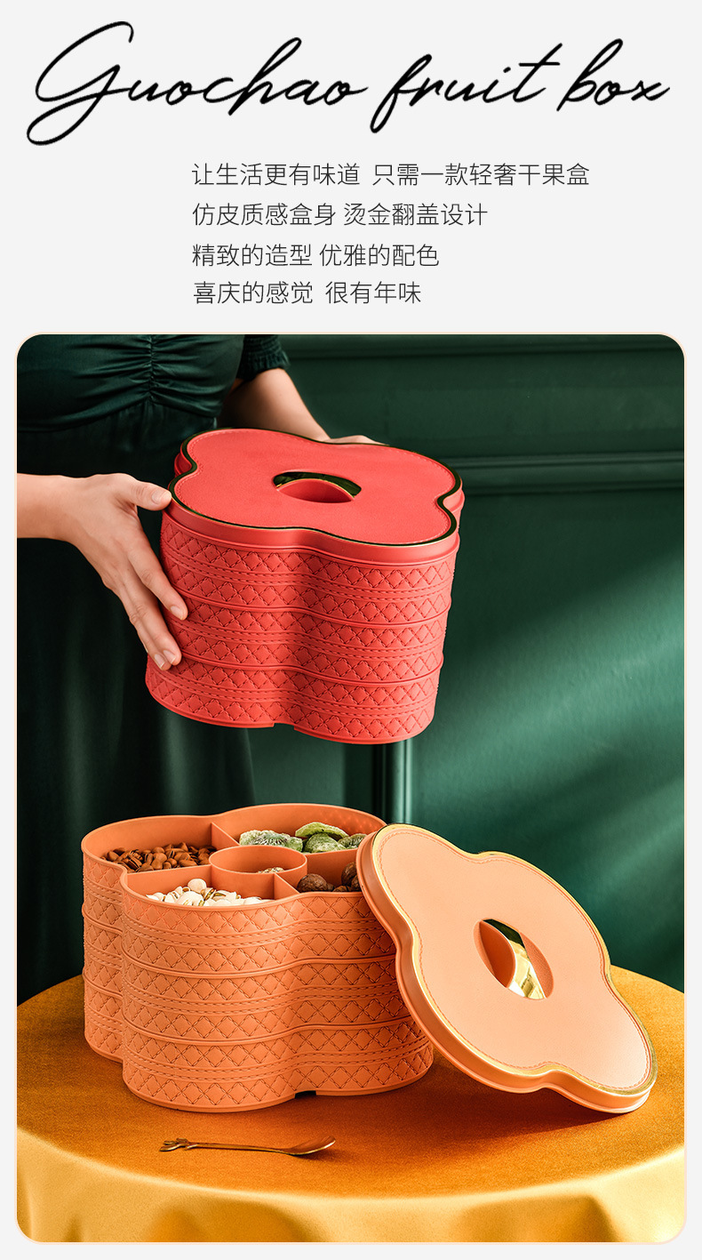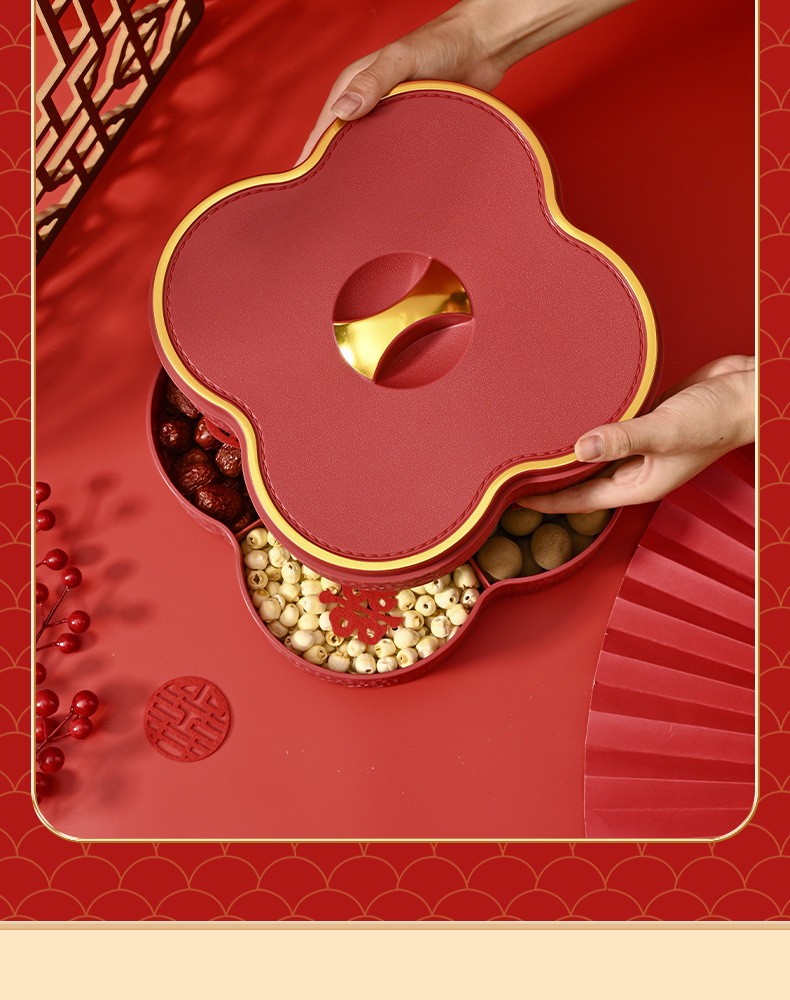 【婚礼果盘】结婚喜糖盘 分格多层 客厅新年新居干果盒 乔迁中国红水果盘
