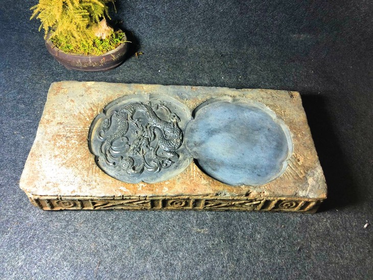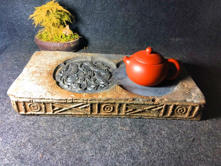 《金钱纹古砖刻霸气龙古砖茶台》