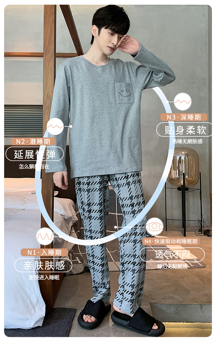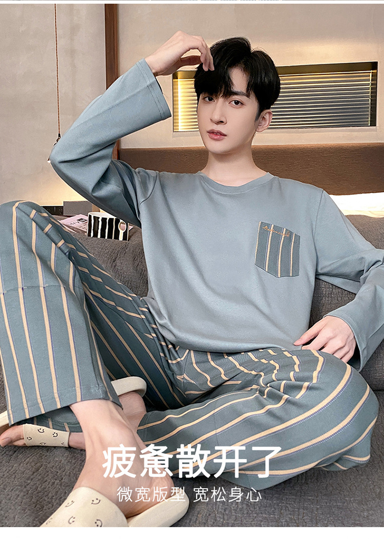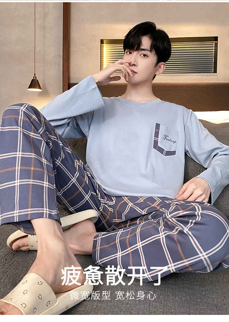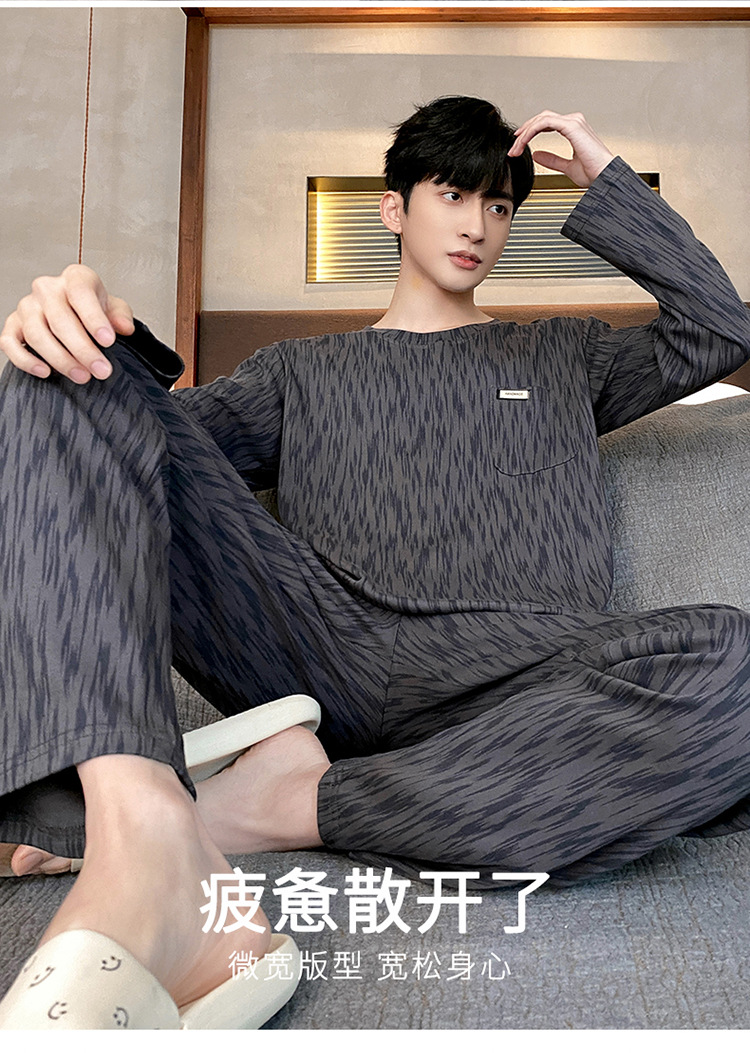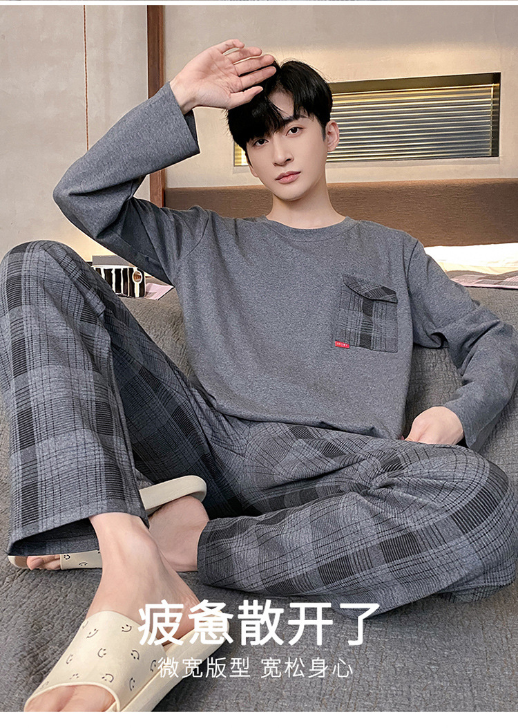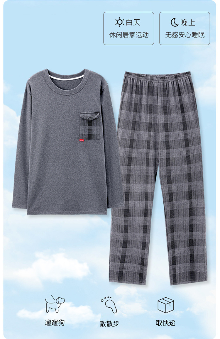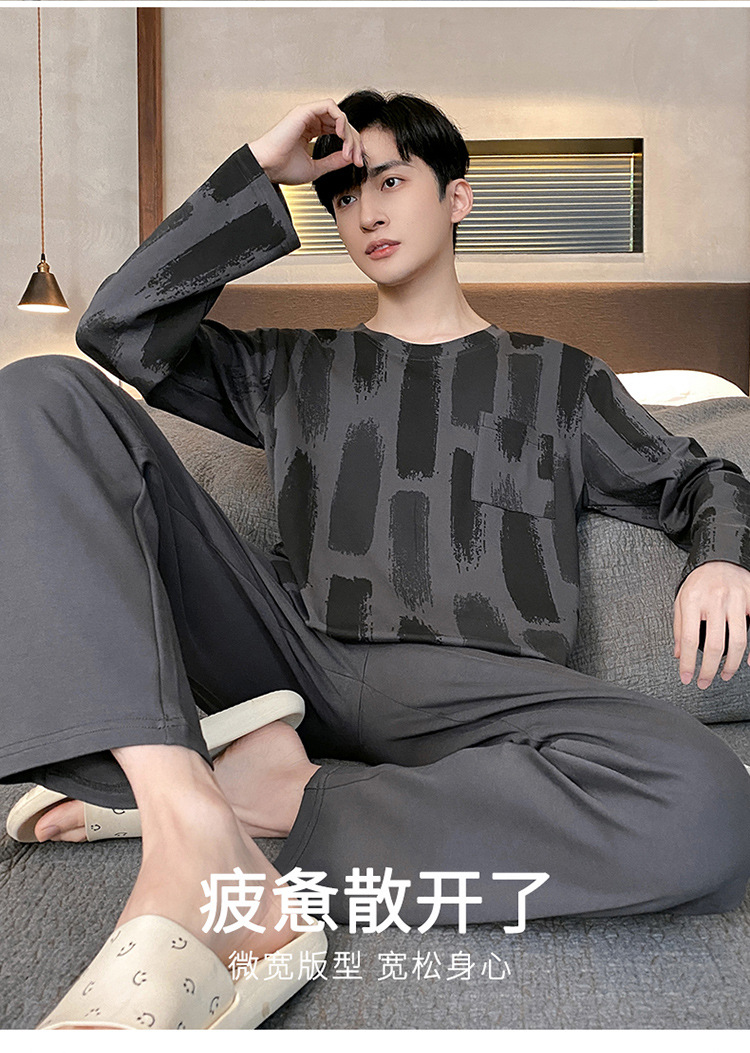 【无感安心睡眠家居服】男士家居服套装 春秋款纯棉长袖 新款休闲加大码 秋冬可外穿家居服,加大码设计,轻松舒适,可外穿家居两相宜