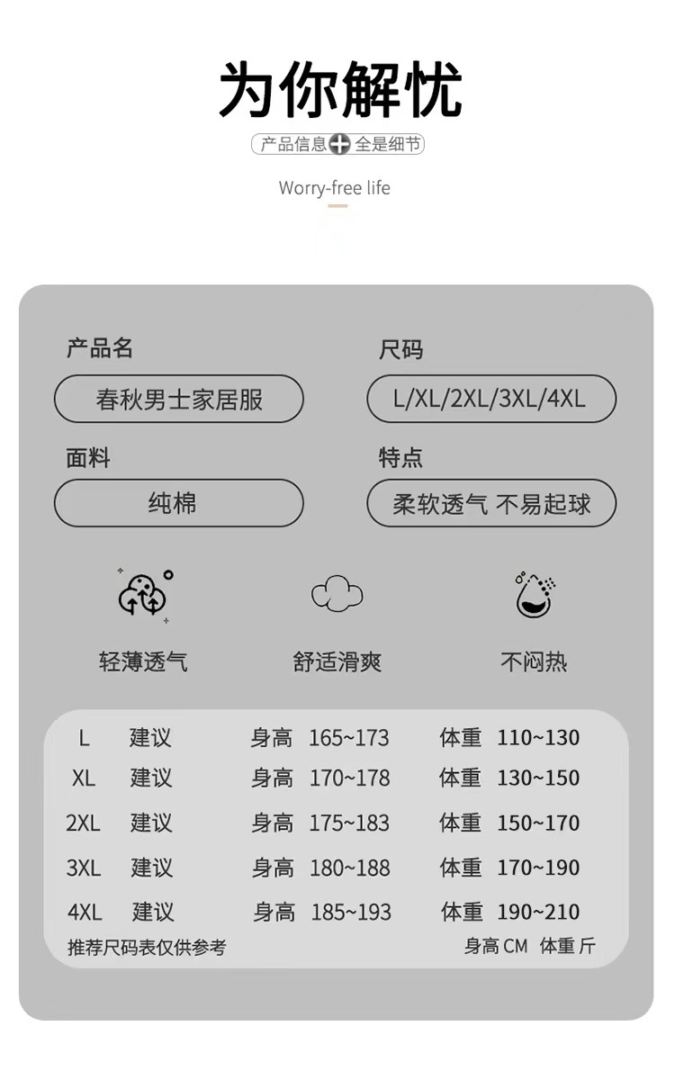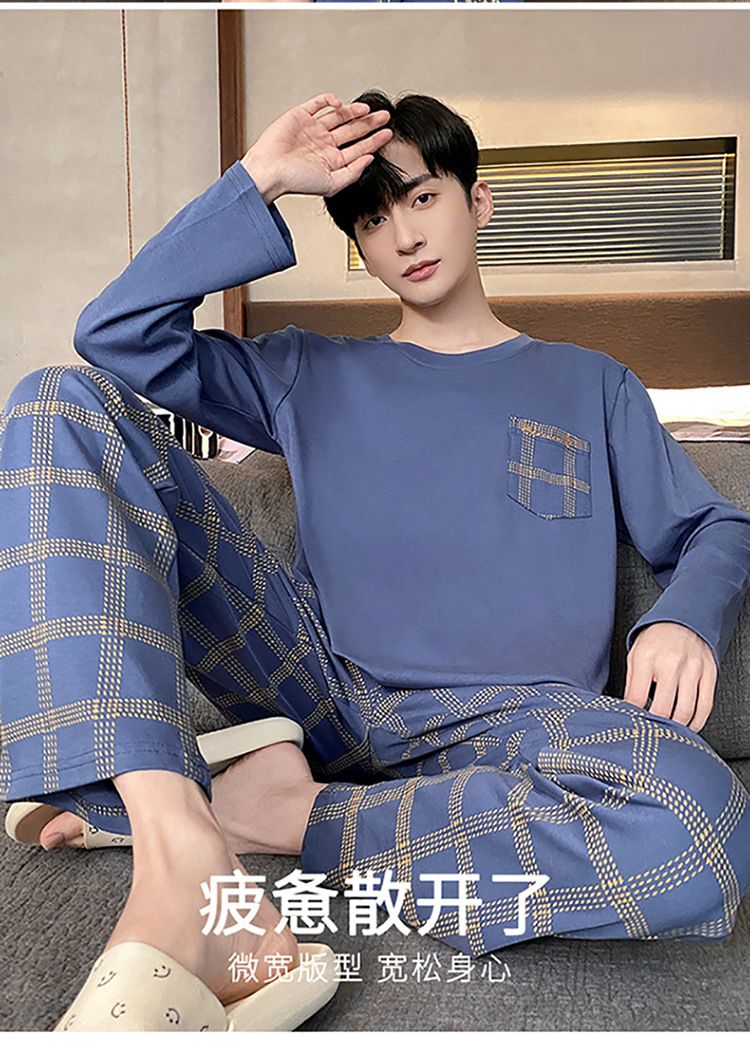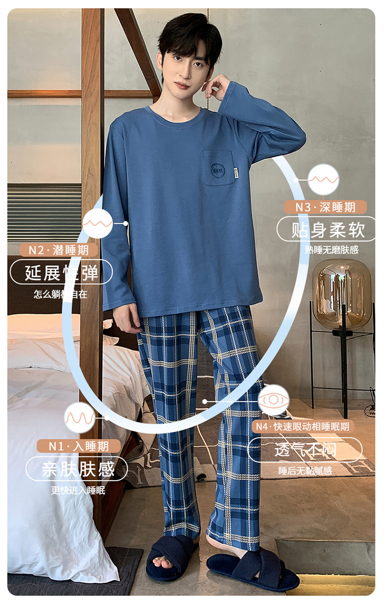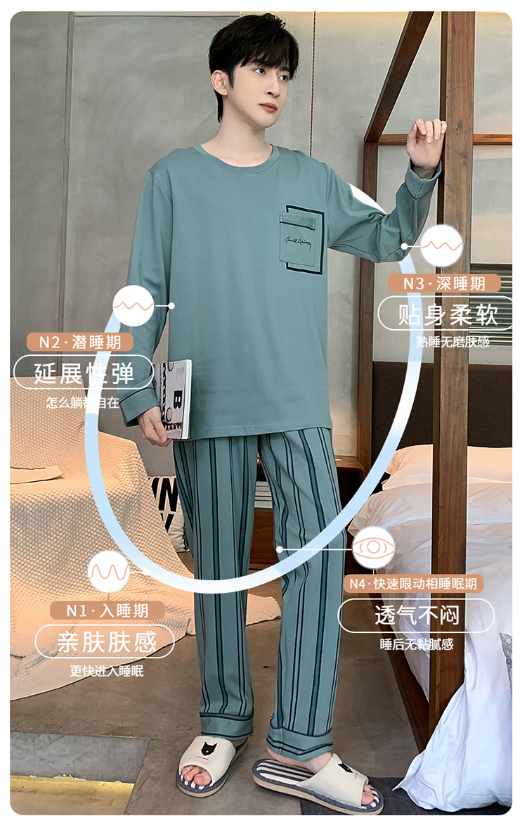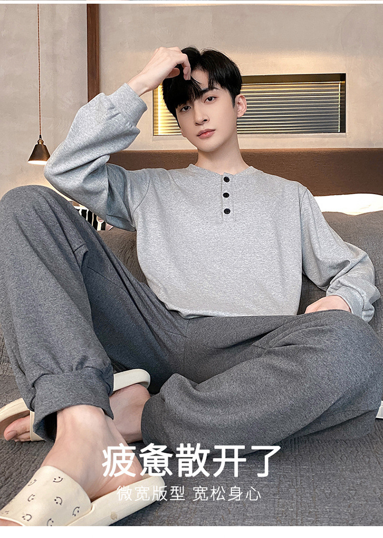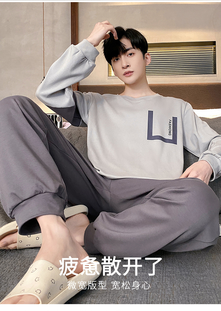 【无感安心睡眠家居服】男士家居服套装 春秋款纯棉长袖 新款休闲加大码 秋冬可外穿家居服,加大码设计,轻松舒适,可外穿家居两相宜