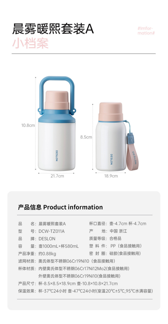 🔥火爆了【德世朗DCW-TZ011A晨雾暖熙套装A】💥冷热皆宜 保温保冷效果没话说🧀光滑的杯身质感很高级🎁收到你们就知道品质和质量了🐈纯赚吆喝不赚钱