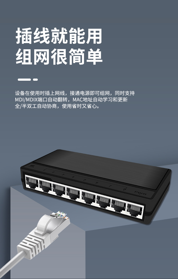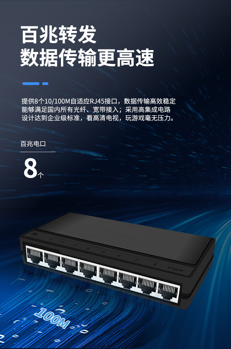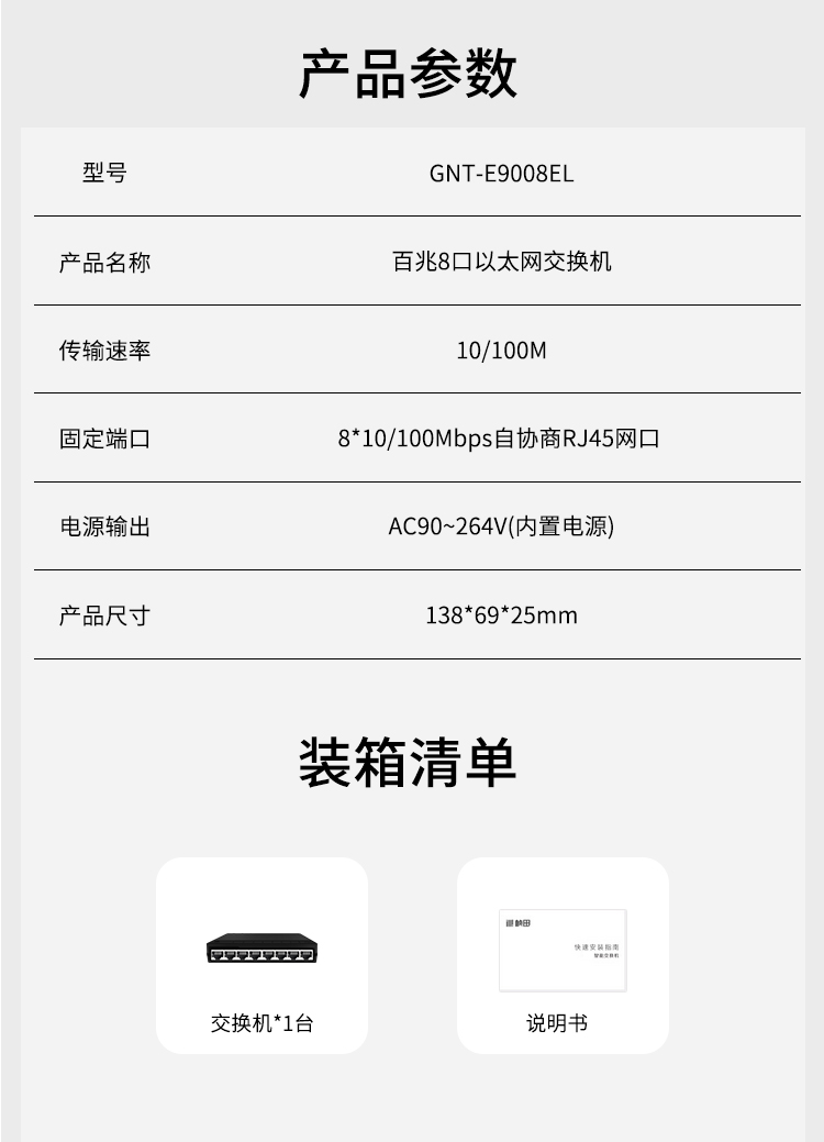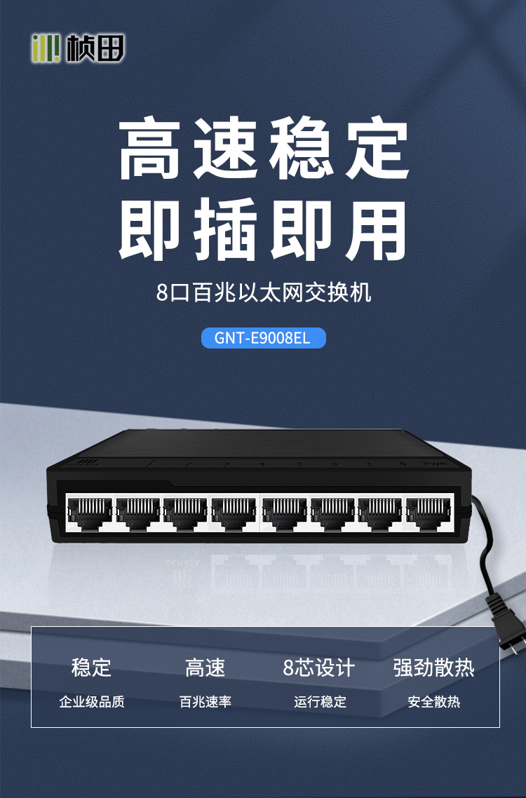 桢田8口百兆交换机塑铝外壳 E9008EL