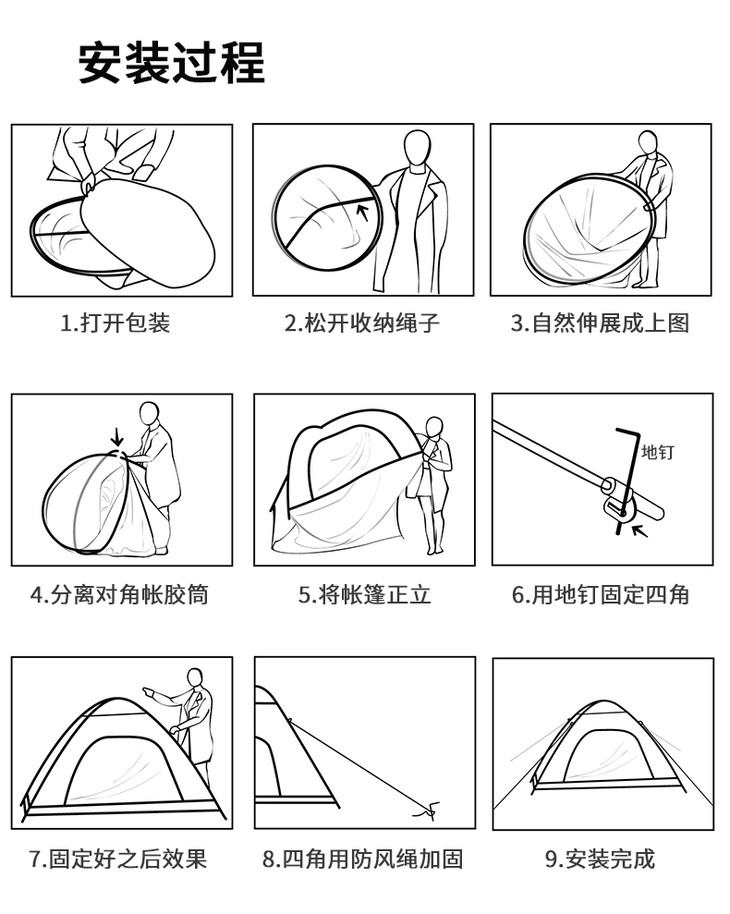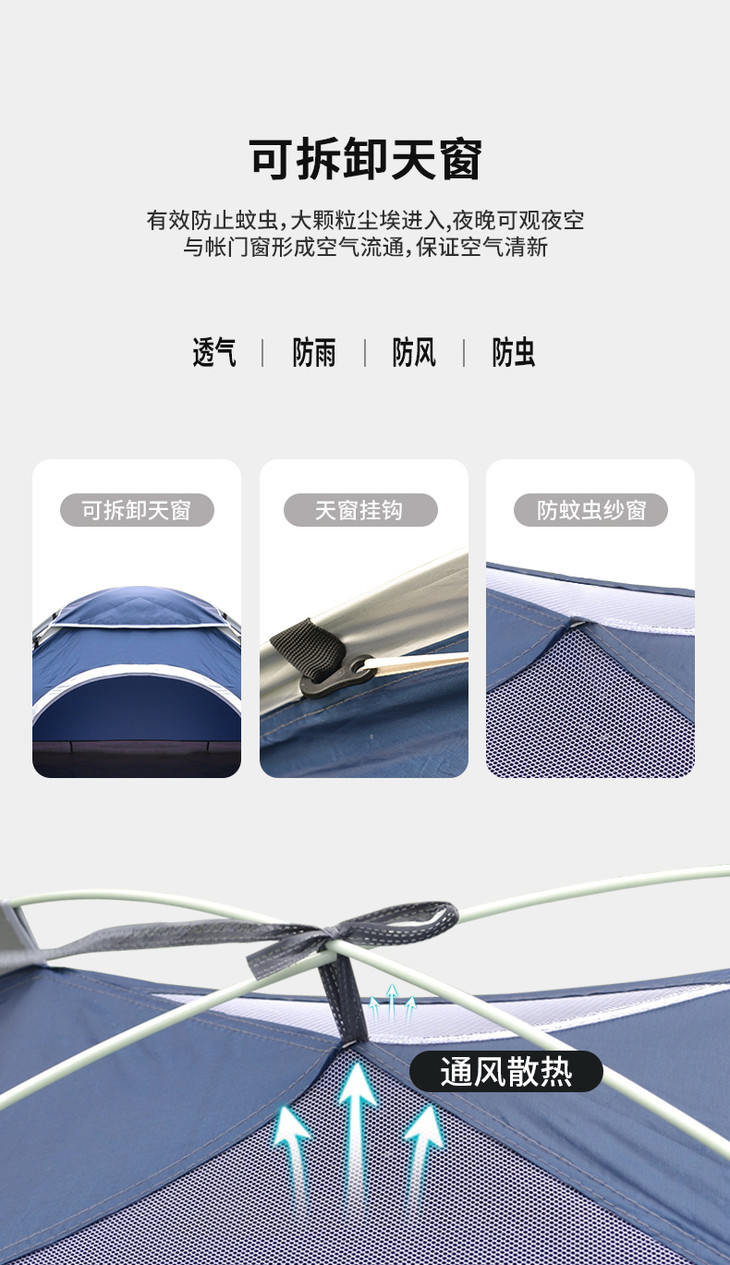 车管家 户外自动帐篷速开3人大空间野外露营防风防水防雨遮阳户外便携式一抛即开免搭建帐篷GJ-2201 蓝色
