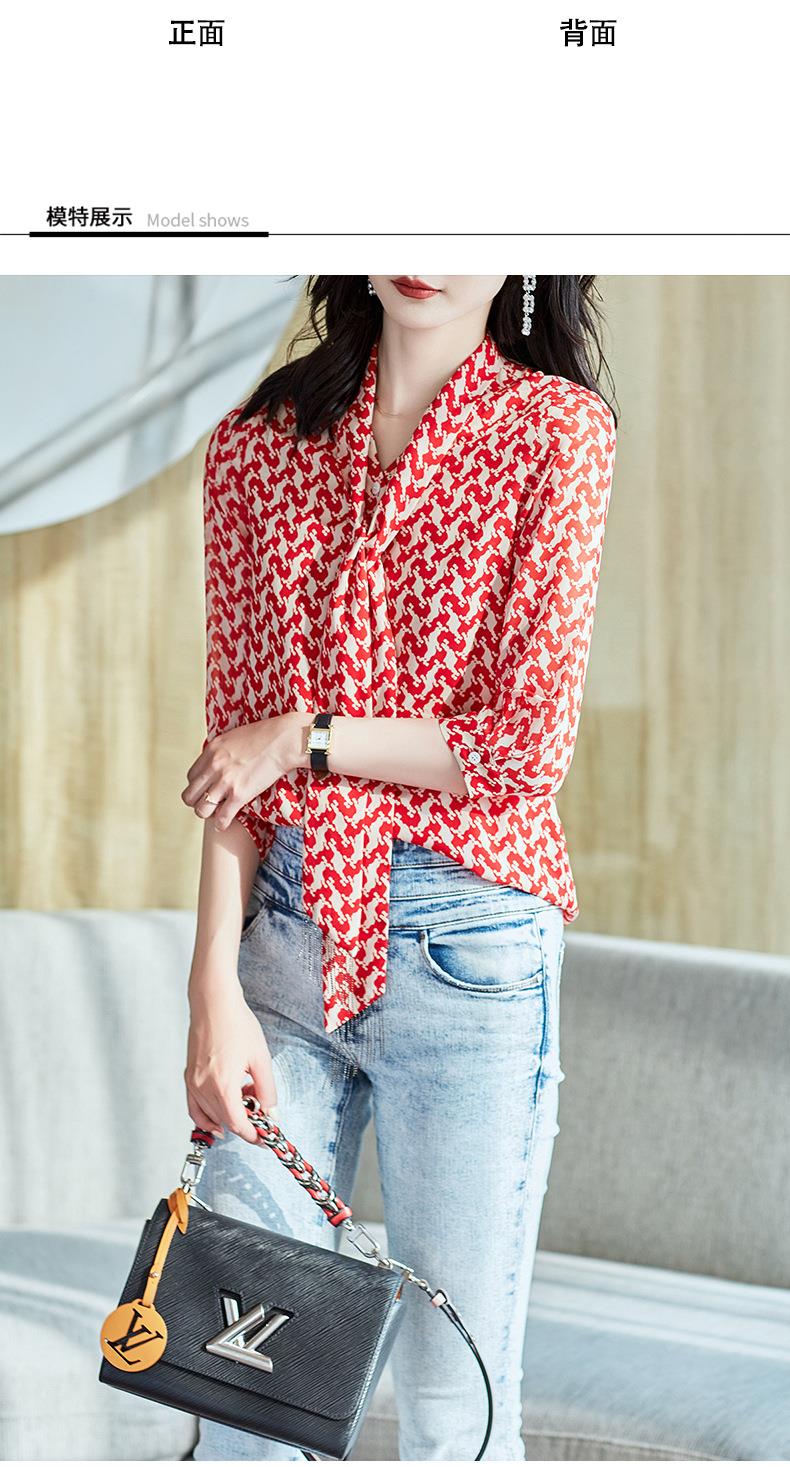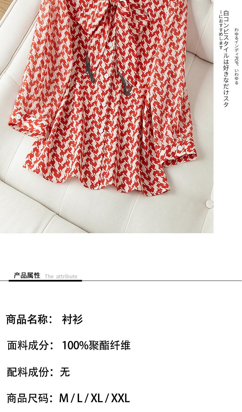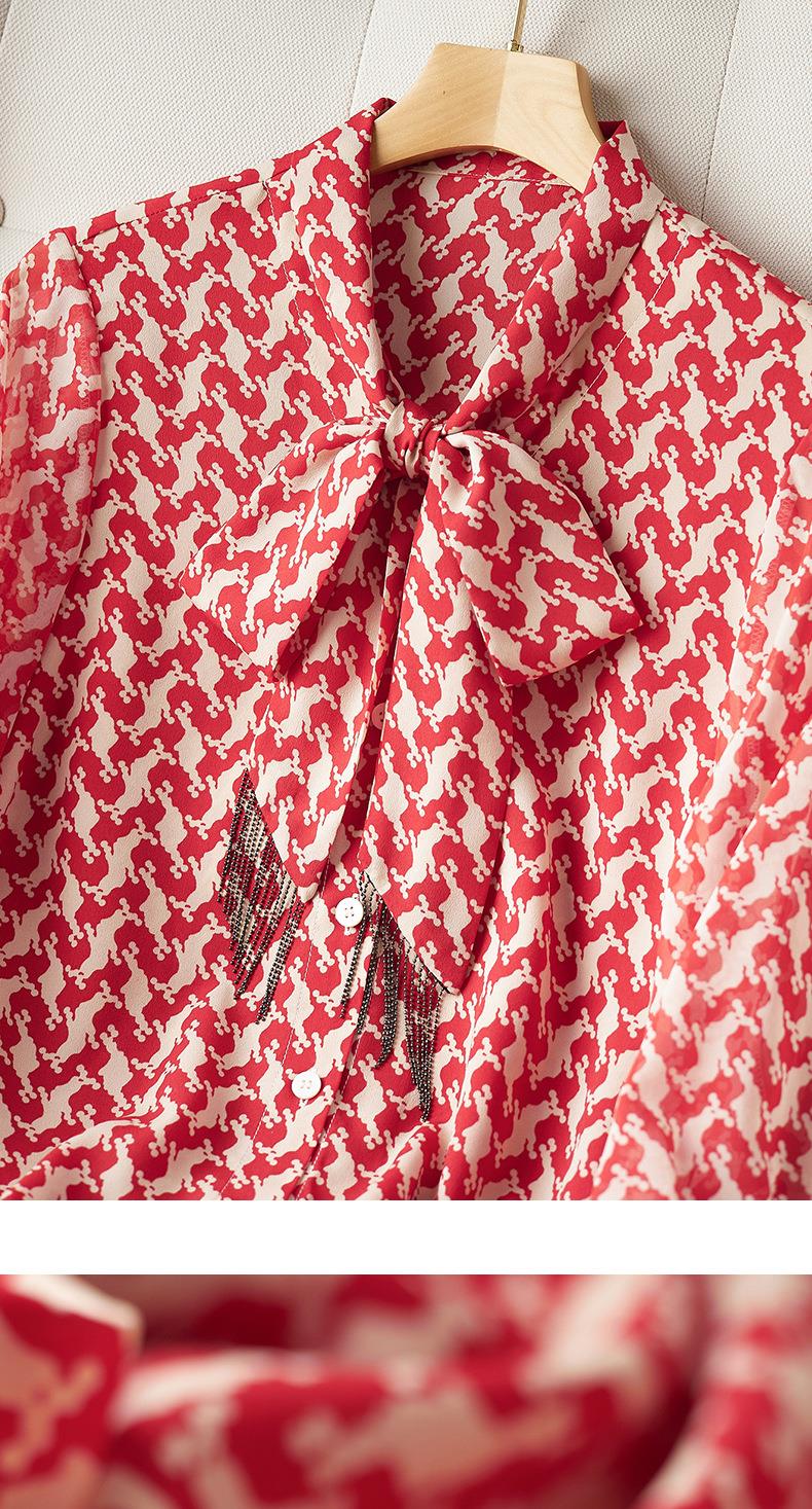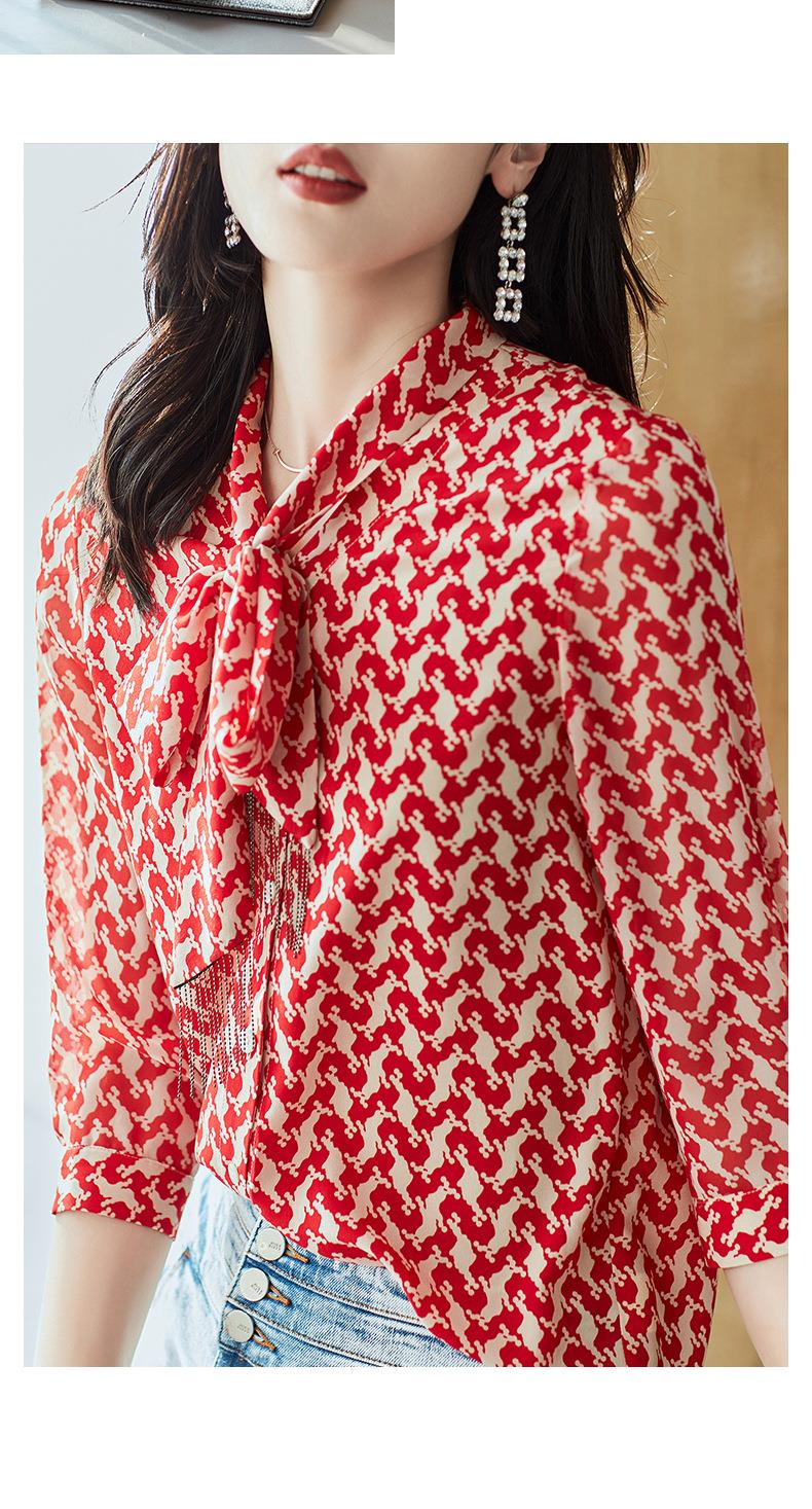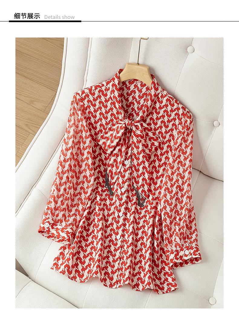 2023秋装新款衬衫女长袖宽松雪纺衫红色女士衬衣A2372