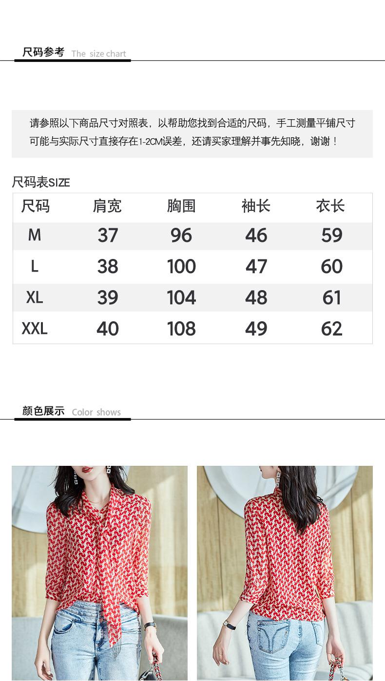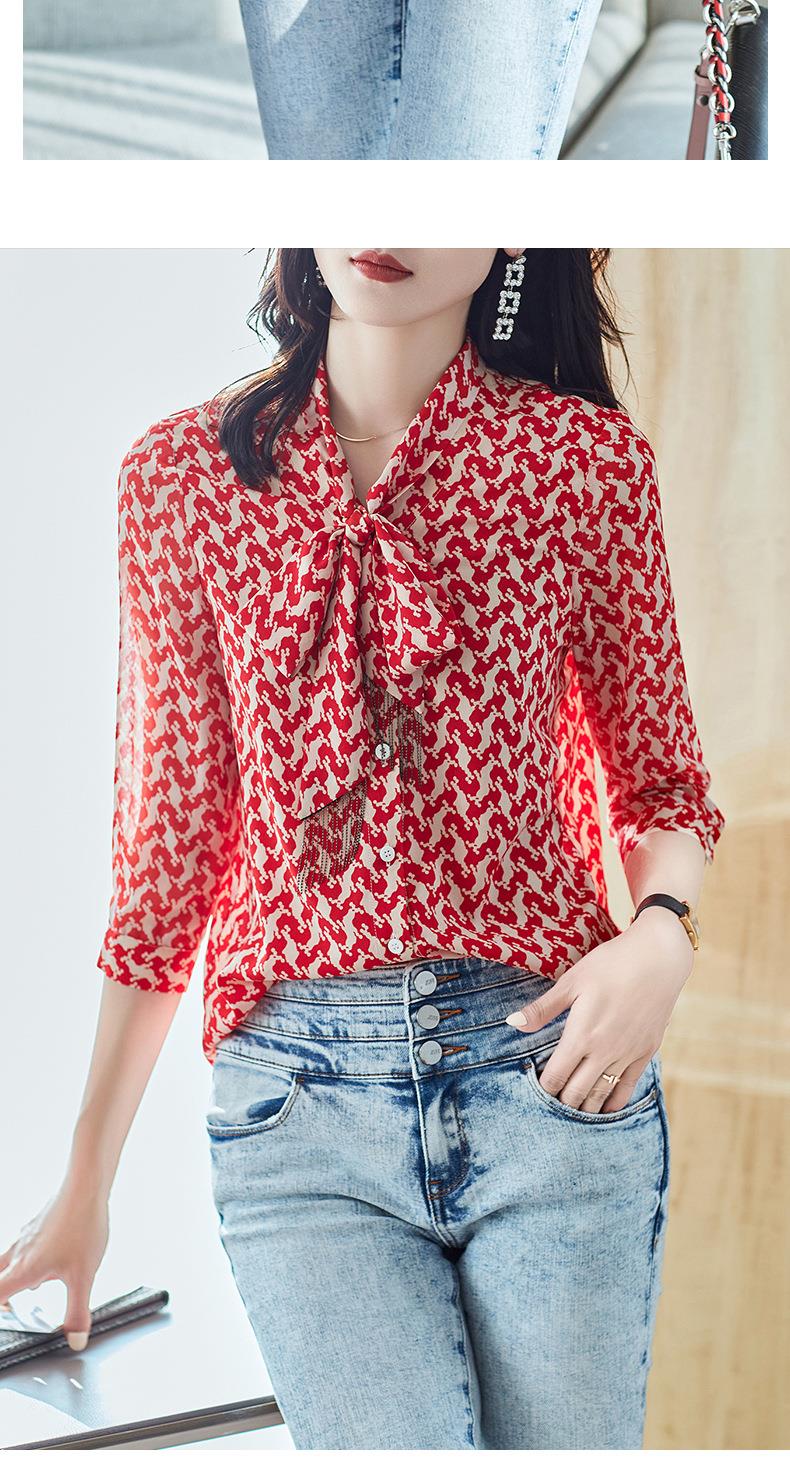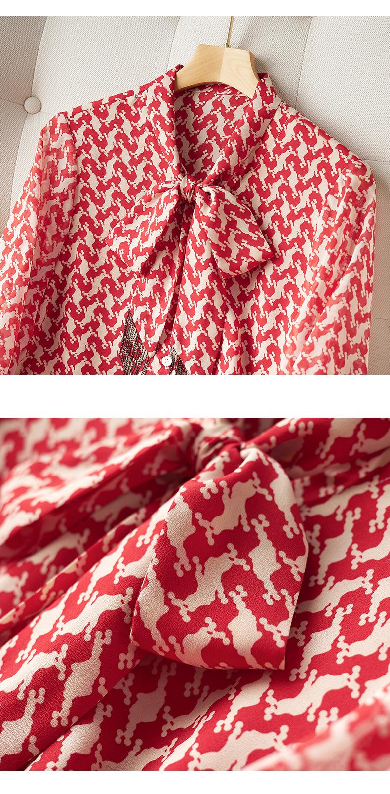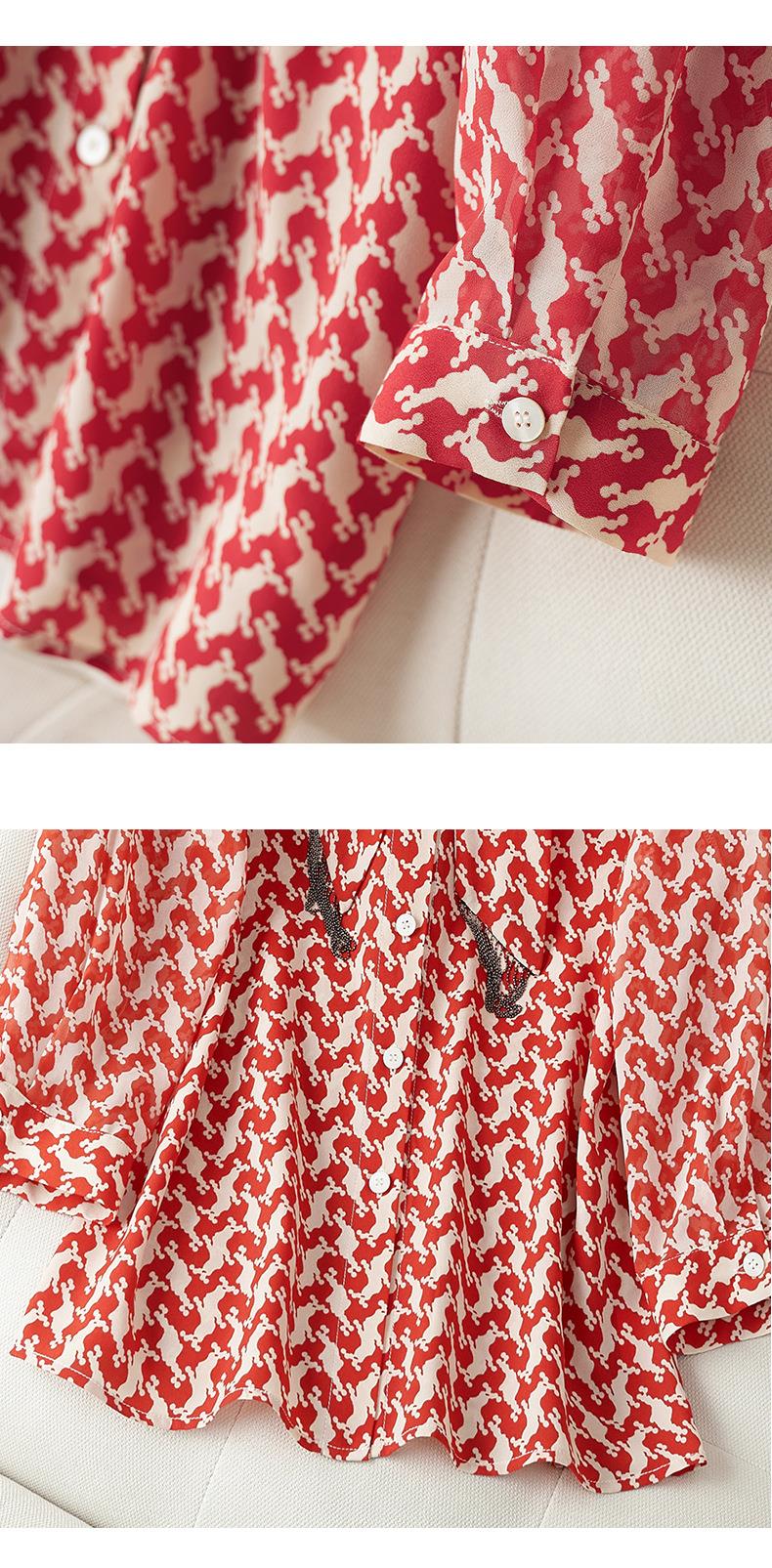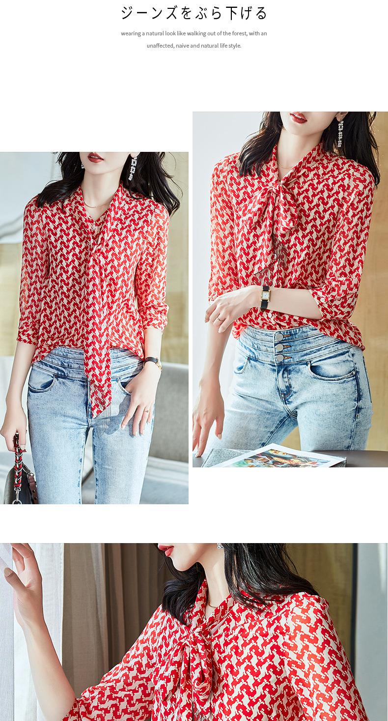 2023秋装新款衬衫女长袖宽松雪纺衫红色女士衬衣A2372