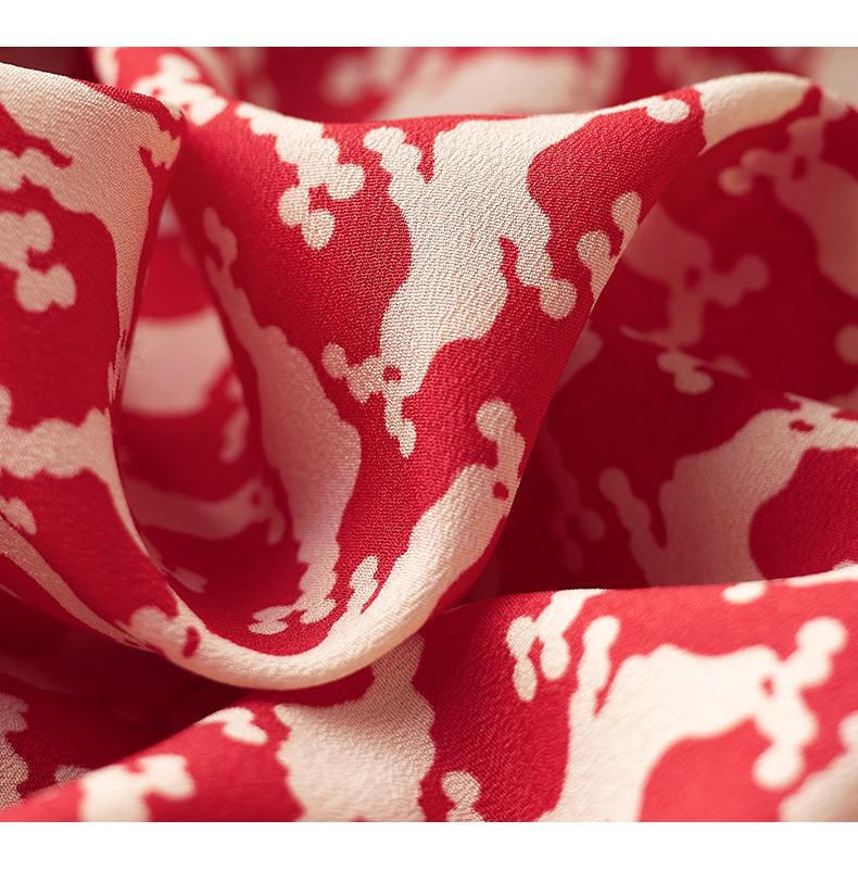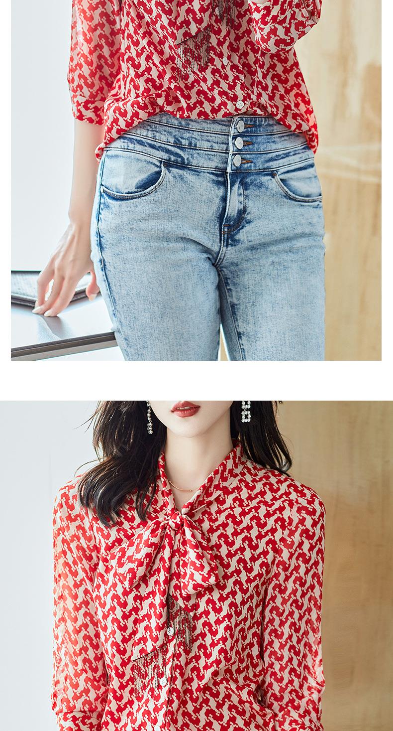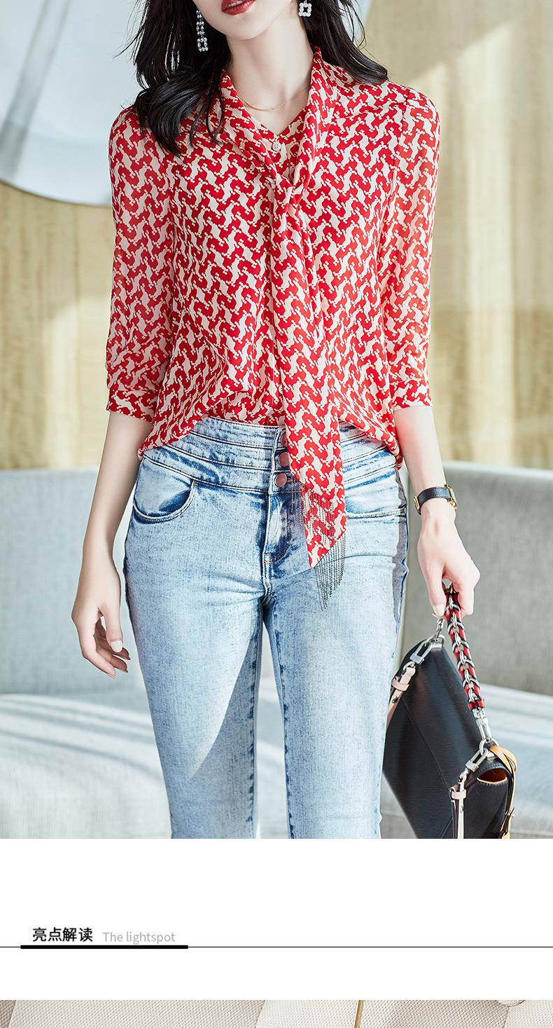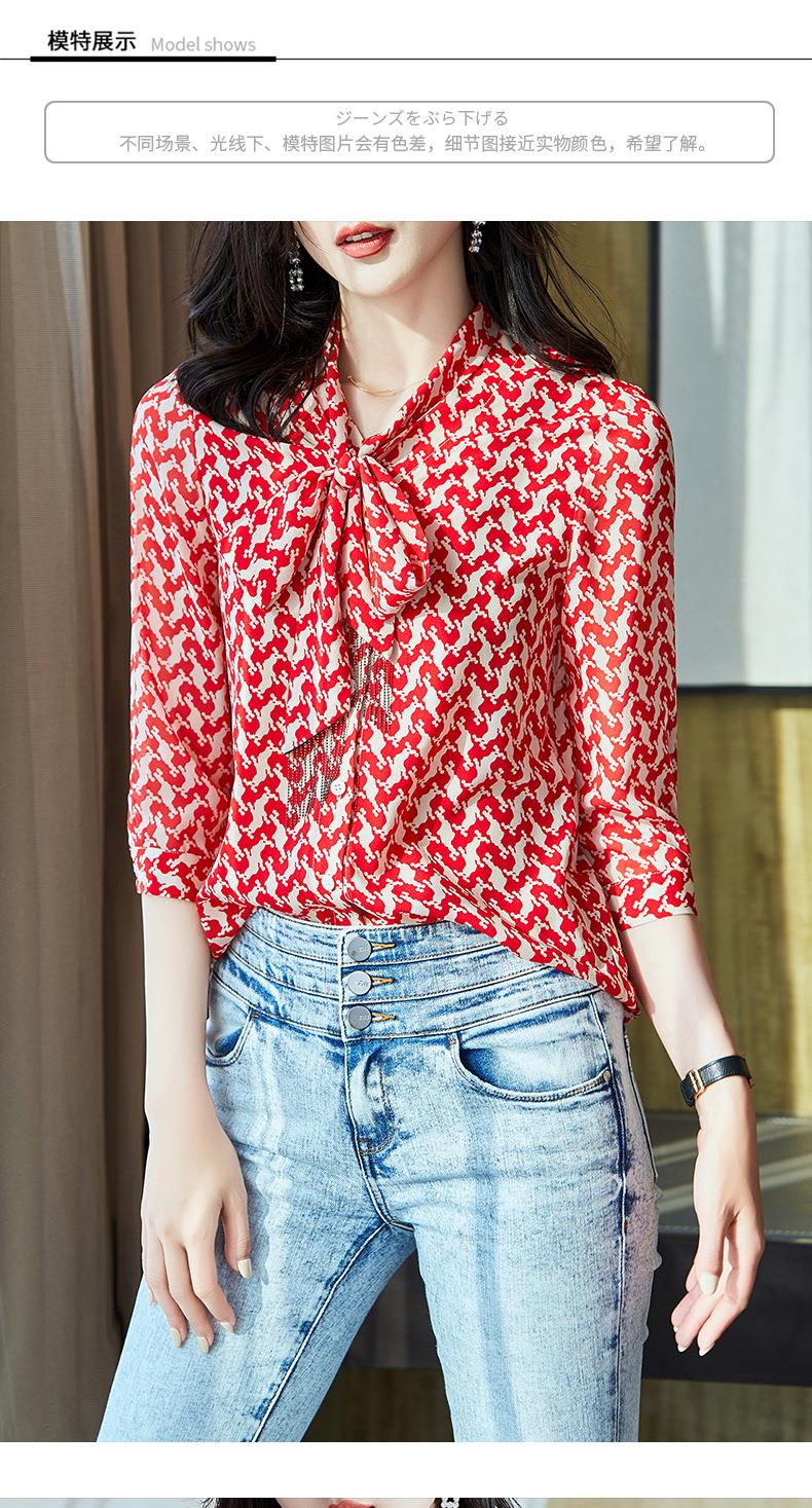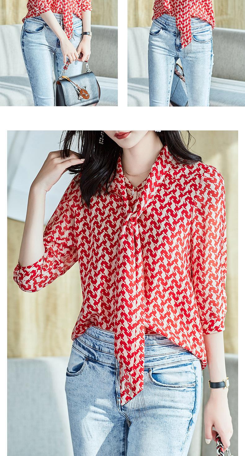 2023秋装新款衬衫女长袖宽松雪纺衫红色女士衬衣A2372