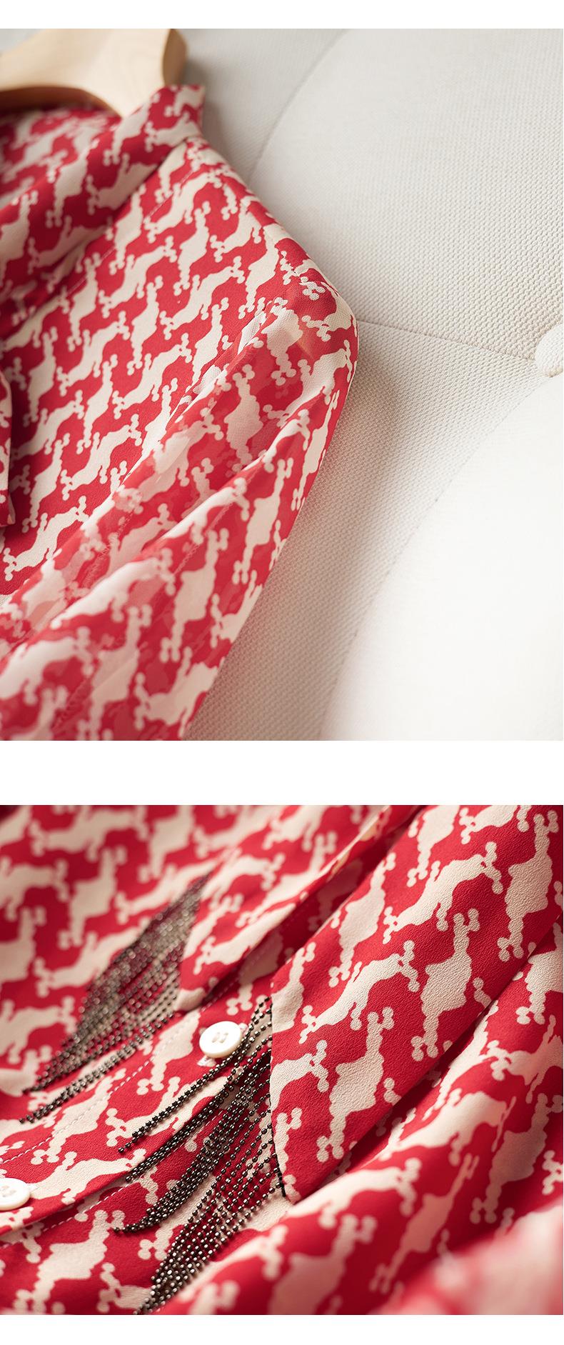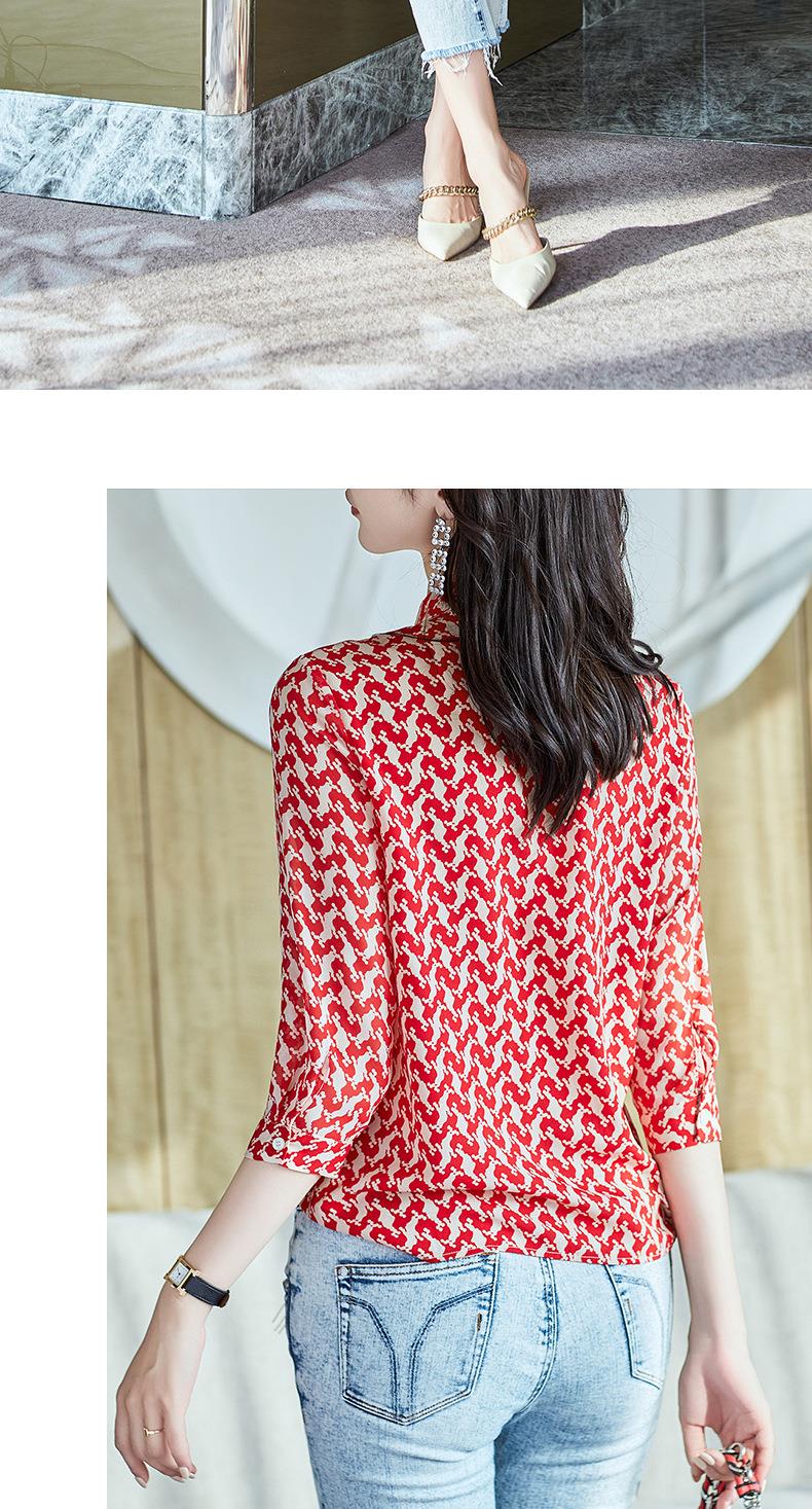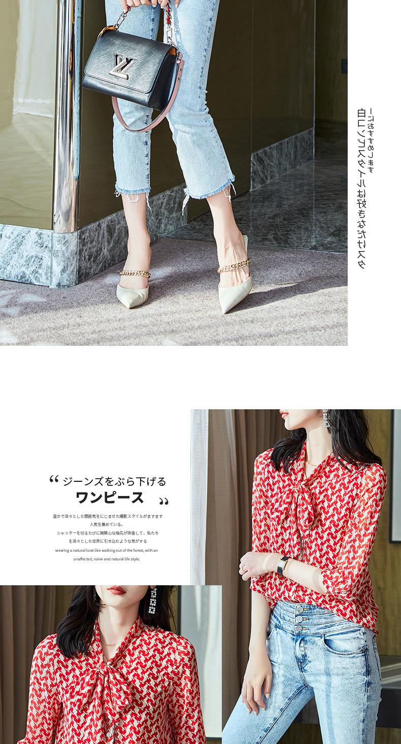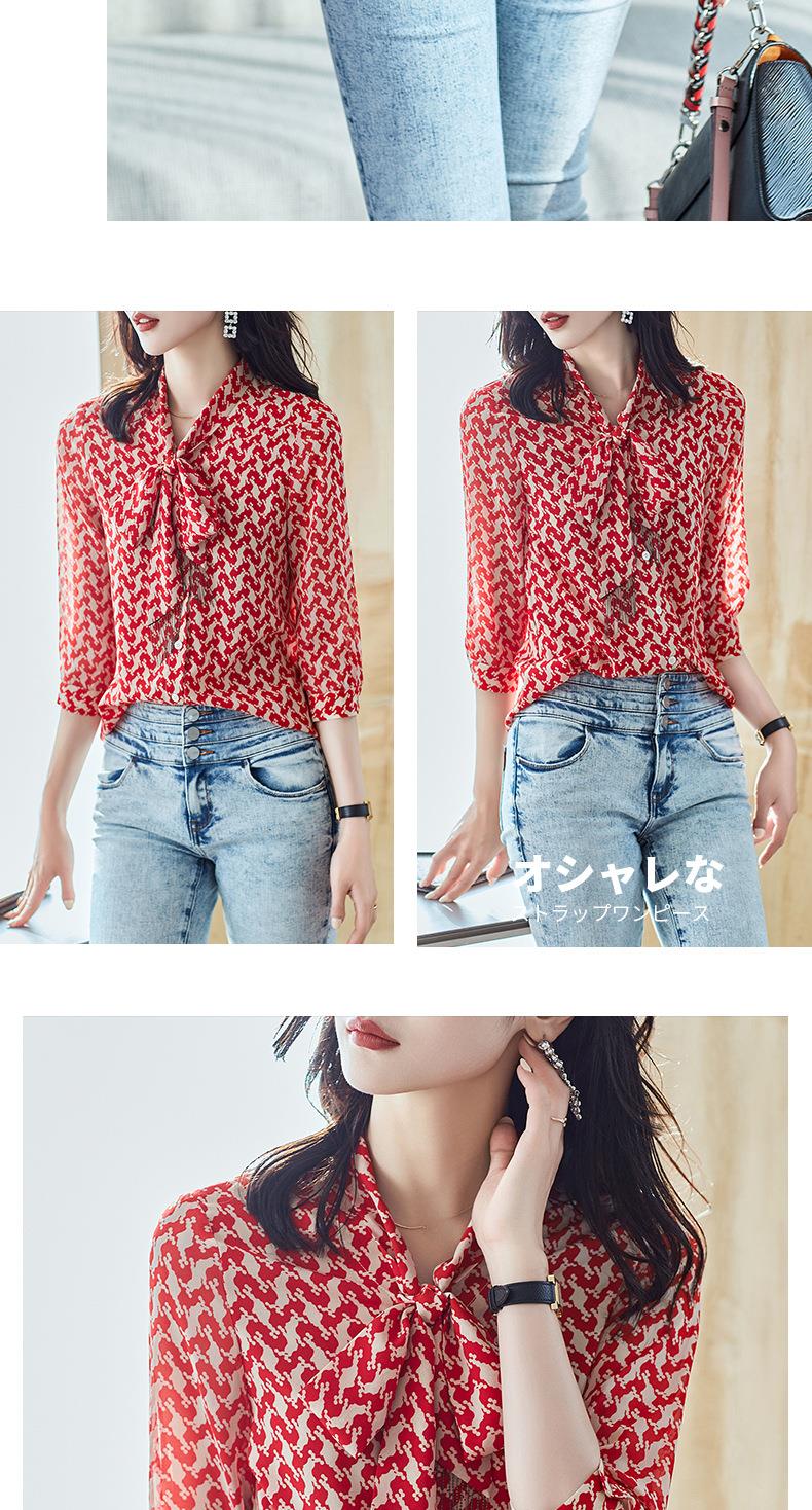 2023秋装新款衬衫女长袖宽松雪纺衫红色女士衬衣A2372