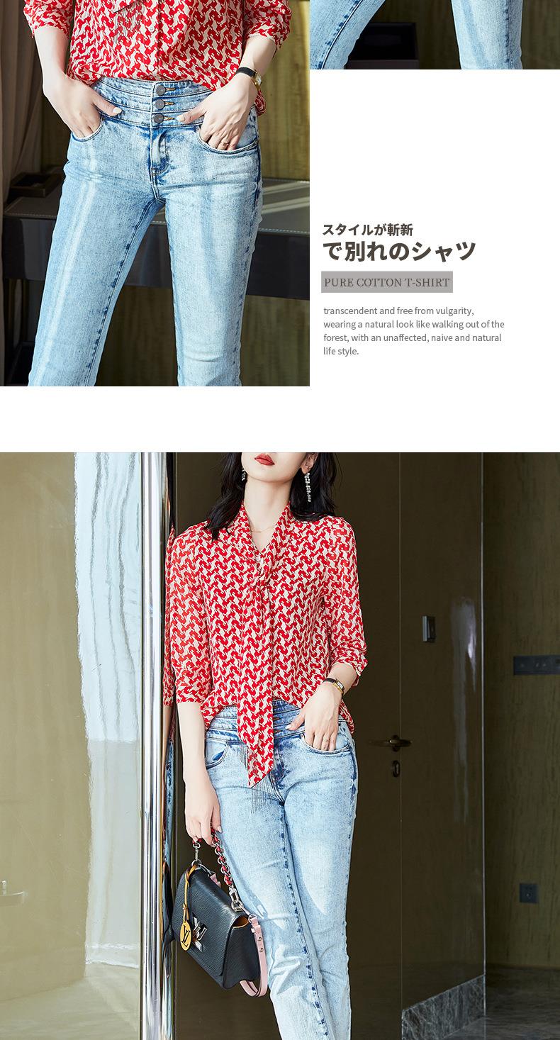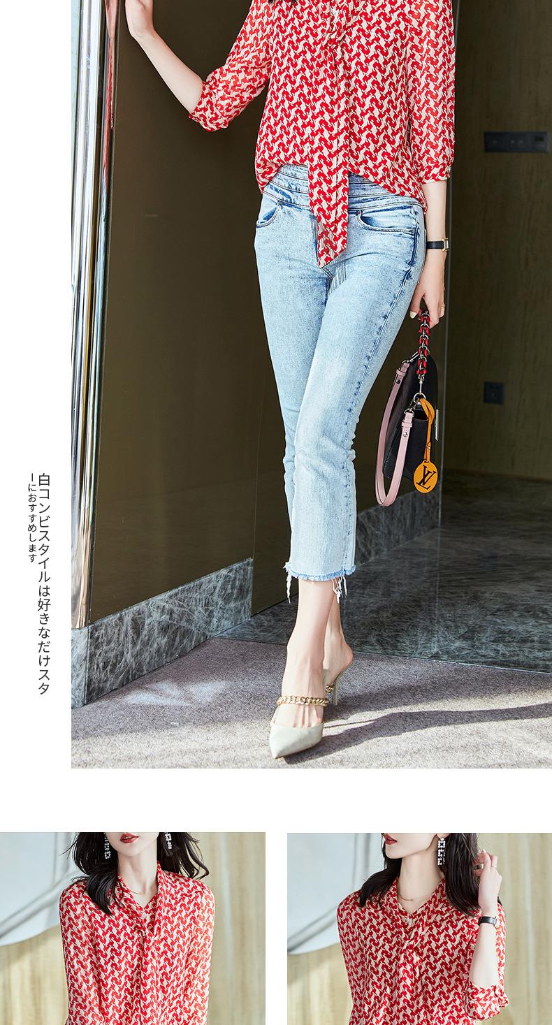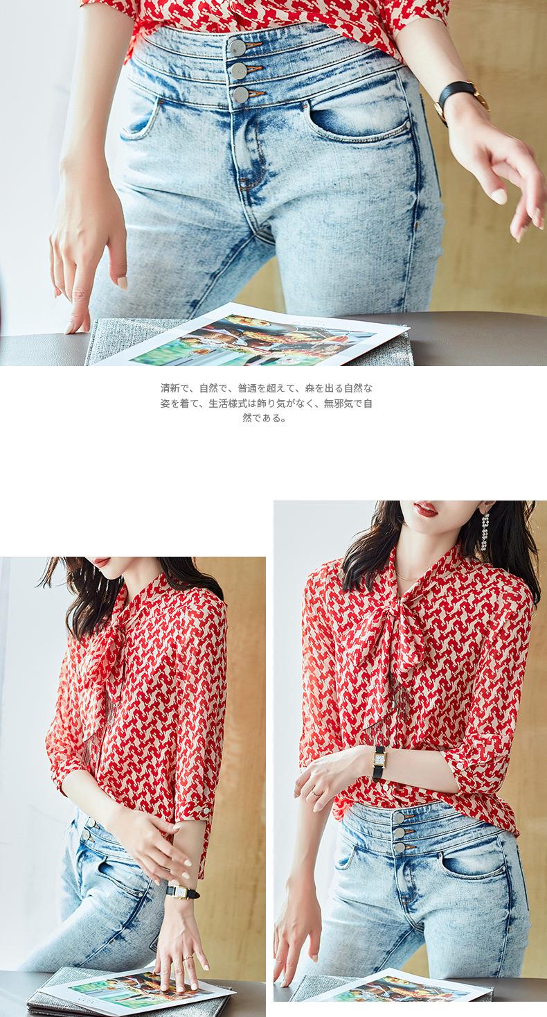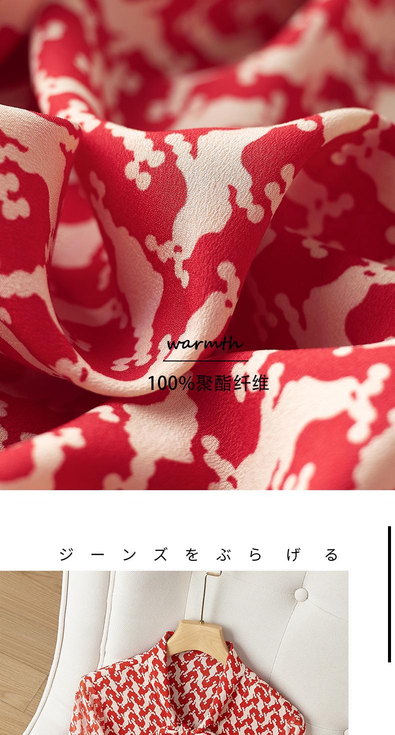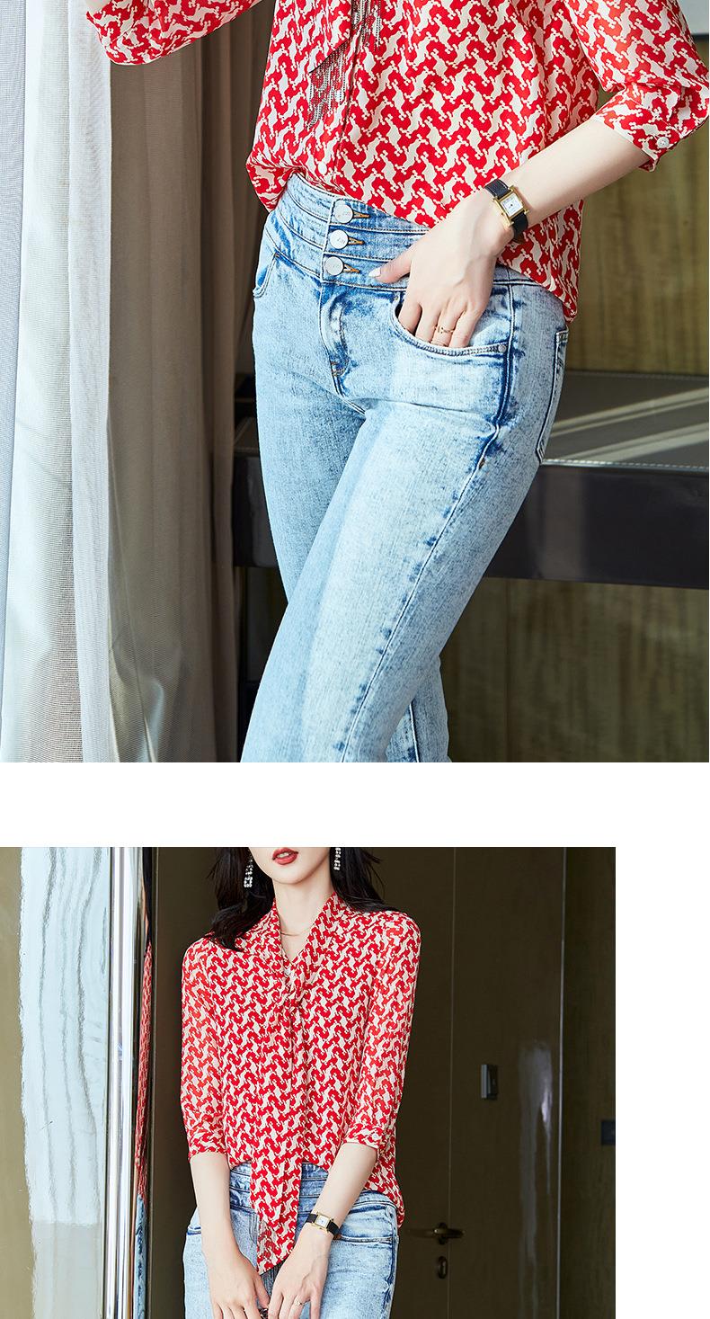 2023秋装新款衬衫女长袖宽松雪纺衫红色女士衬衣A2372