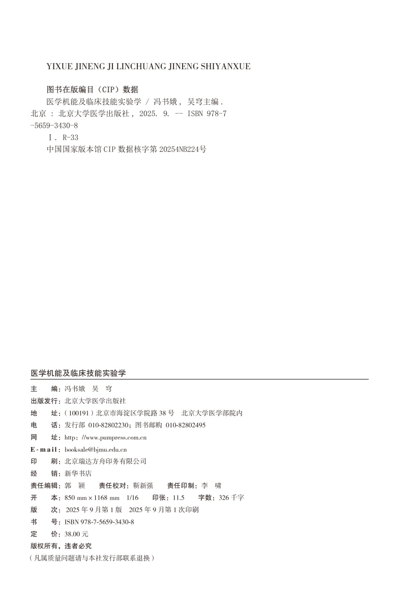医学机能及临床技能实验学 高等医学院校实验教材 冯书娥 吴穹 供临床医学预防医学医学影像学药学等专业使用 北京大学医学出版社