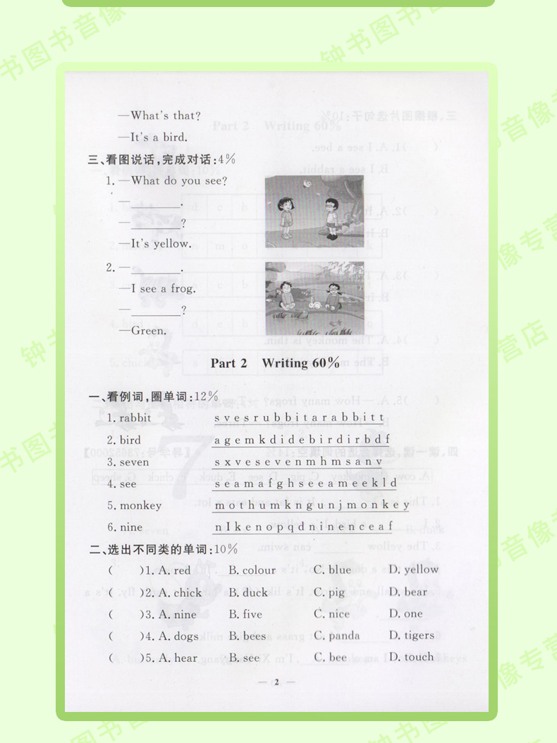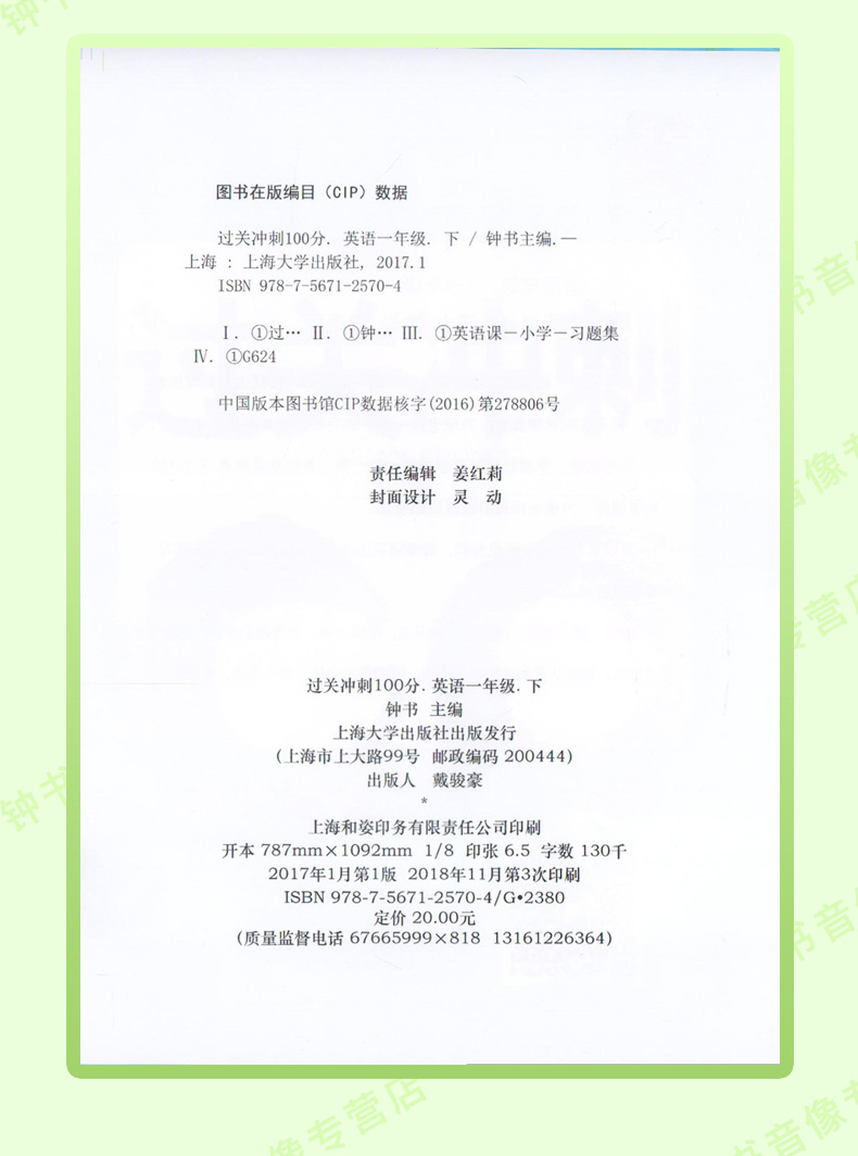 钟书金牌过关冲刺100分 英语 1年级下册/一年级第二学期 上海小学教材教辅同步配套试卷周考月考单元测试卷期中期末满分冲刺卷