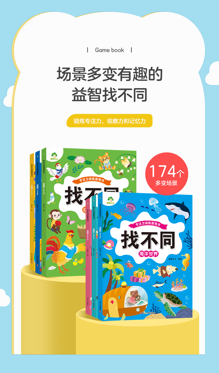 爱德少儿 专注力训练游戏书找不同 6册全套儿童益智智力幼儿启蒙动脑幼儿园游戏书籍