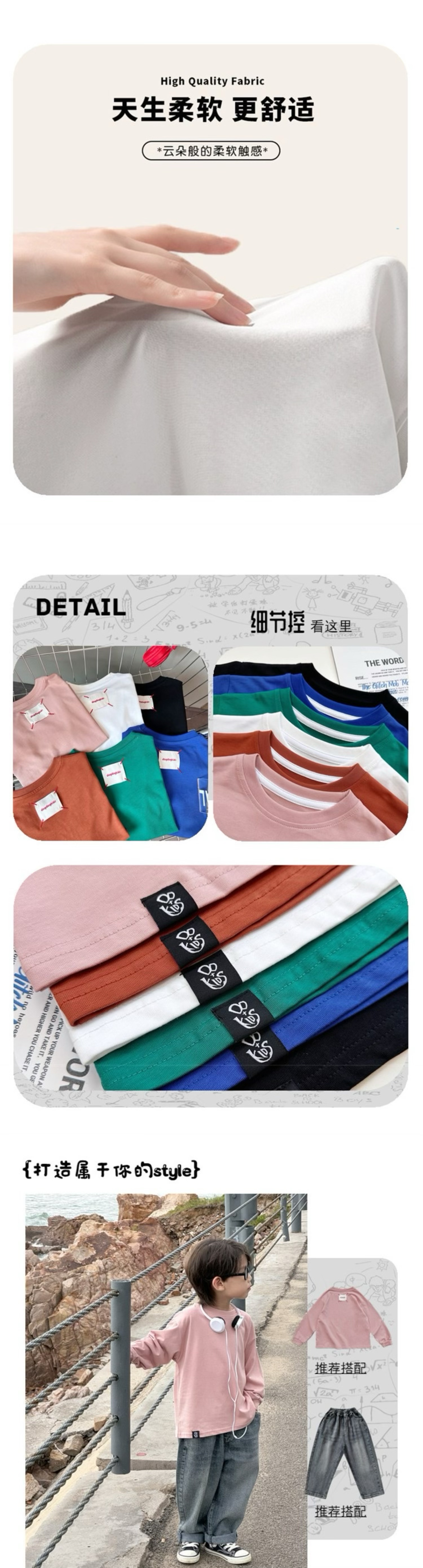 【59.9到手2件】儿童韩系潮牌纯棉T恤丨巨软糯~纯色简约 大小童男女潮款上衣