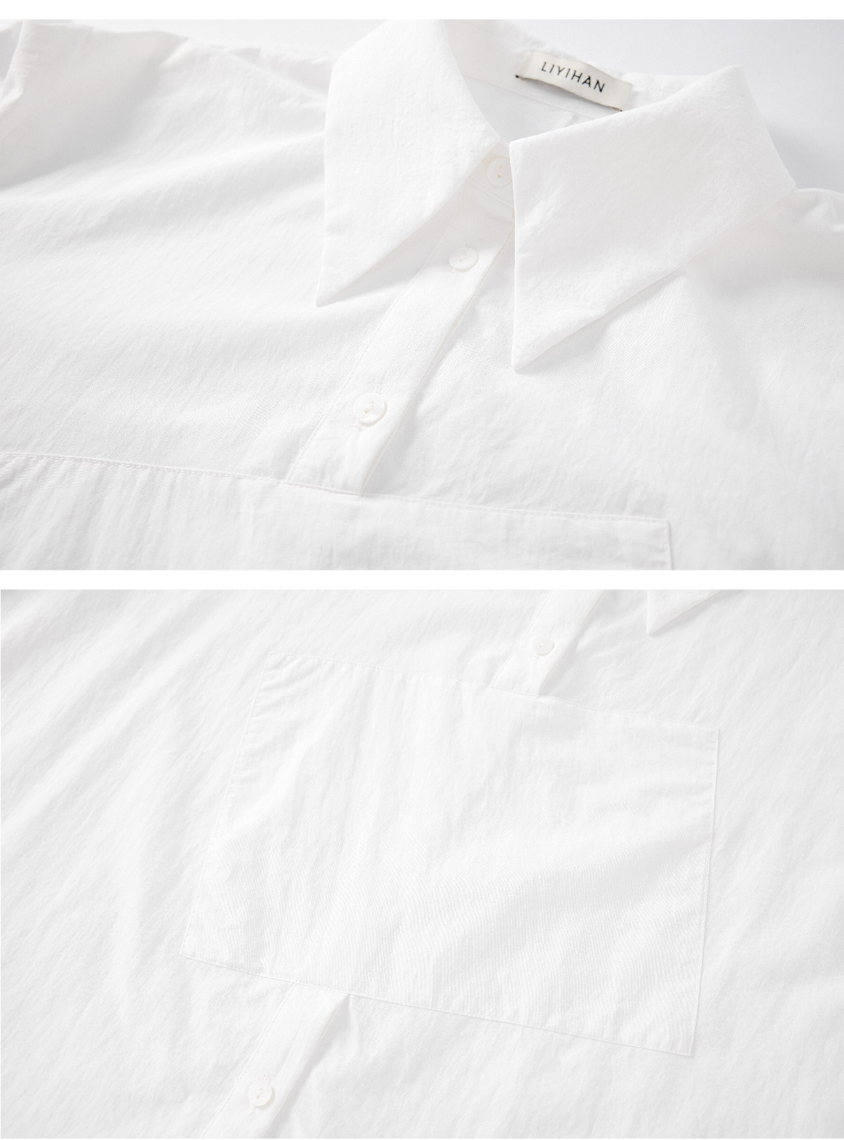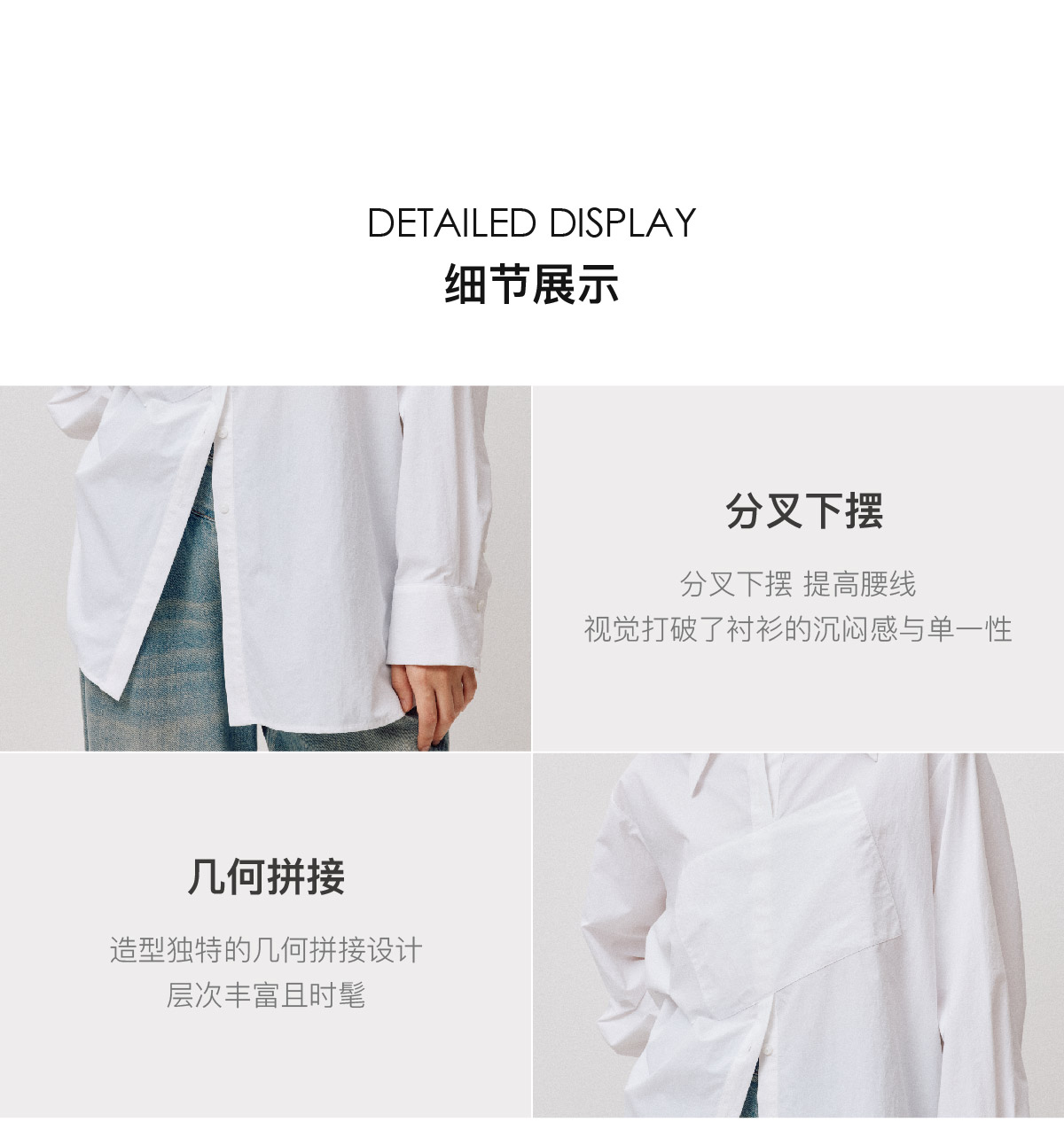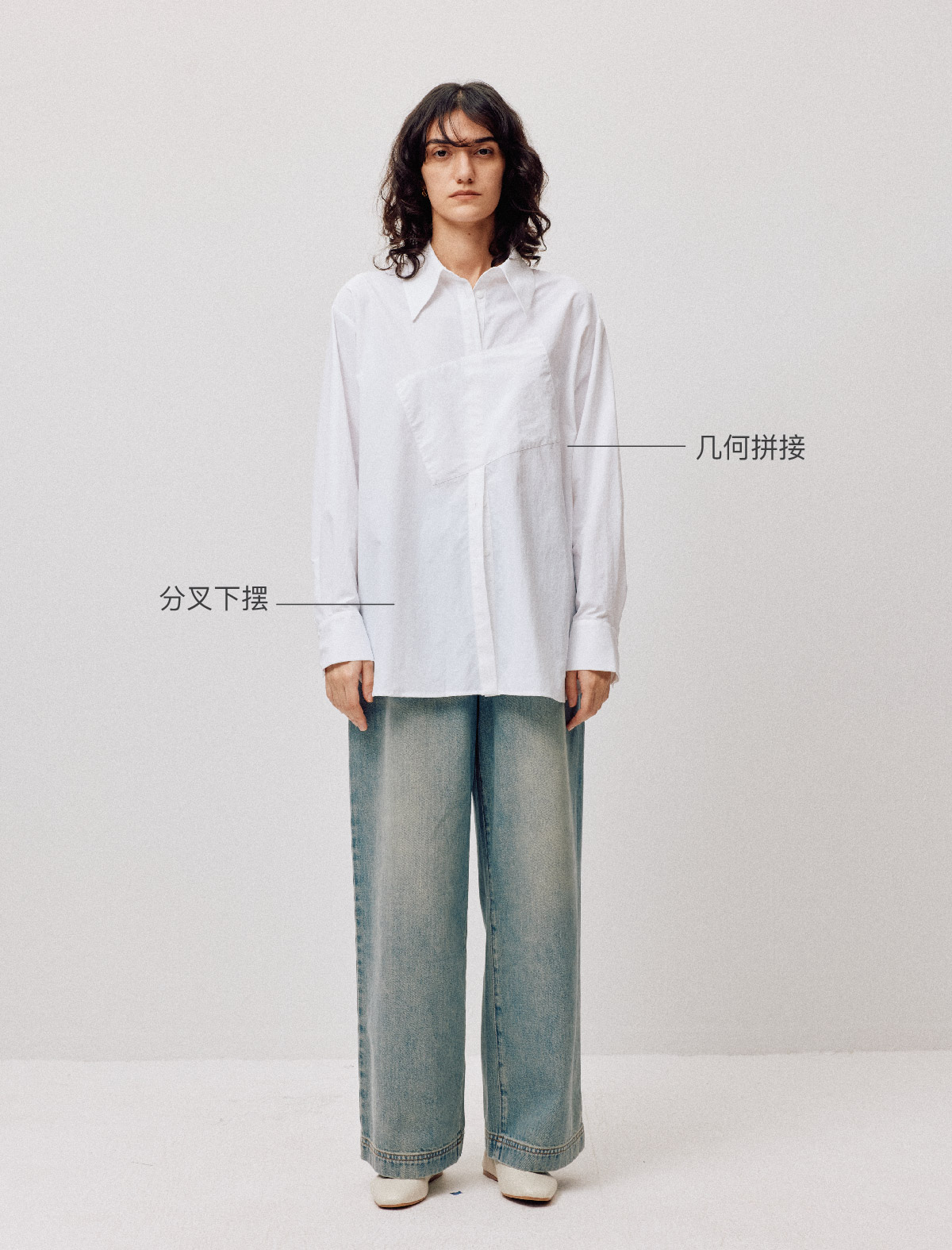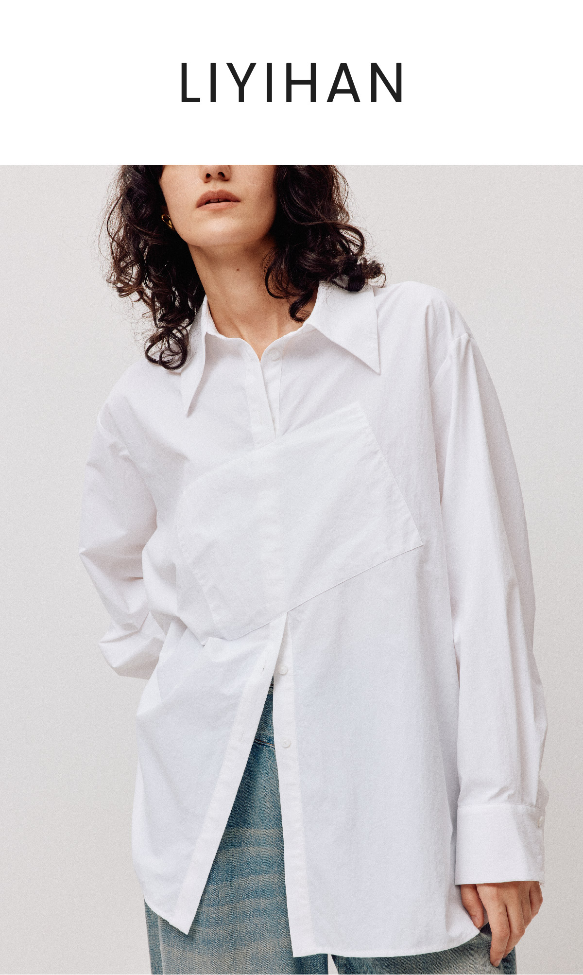 LIYIHAN 白上白几何拼接设计感纯棉衬衫休闲时尚简约