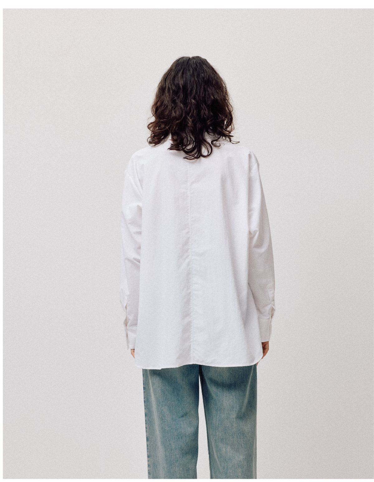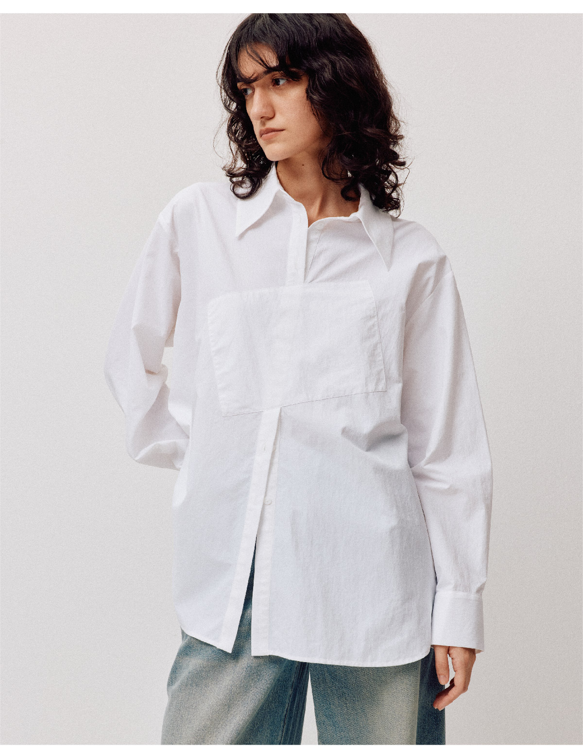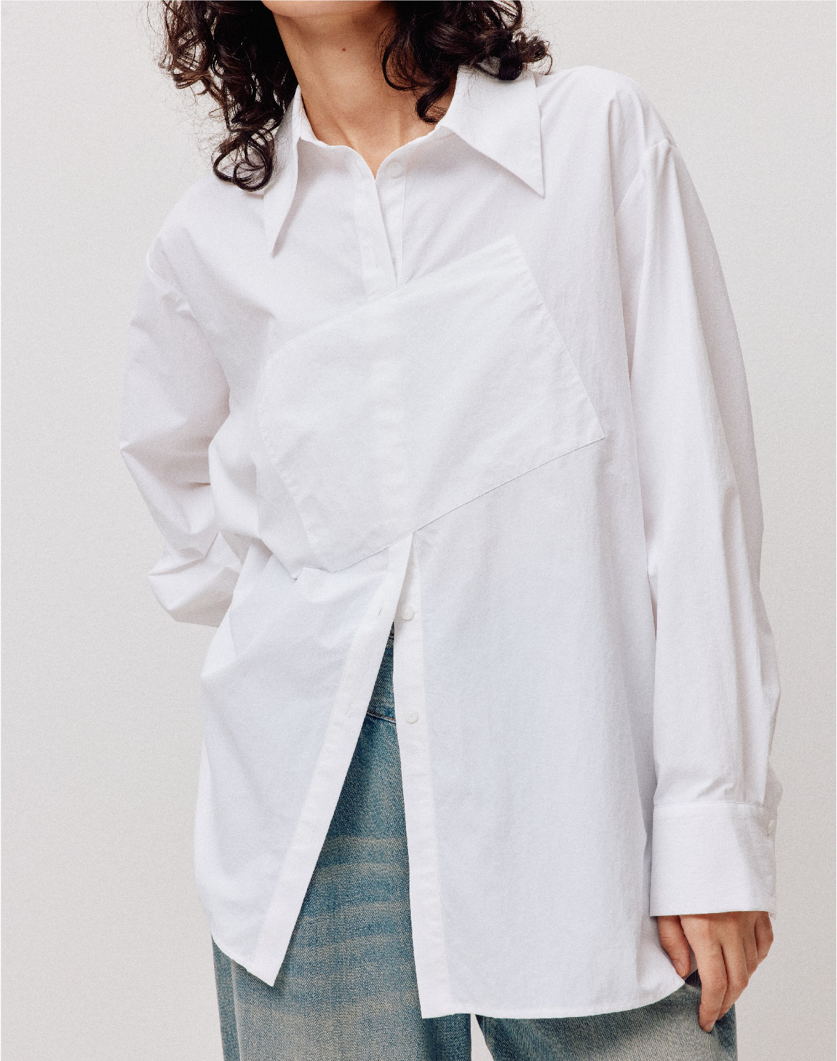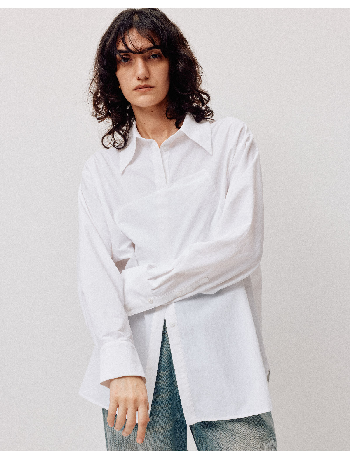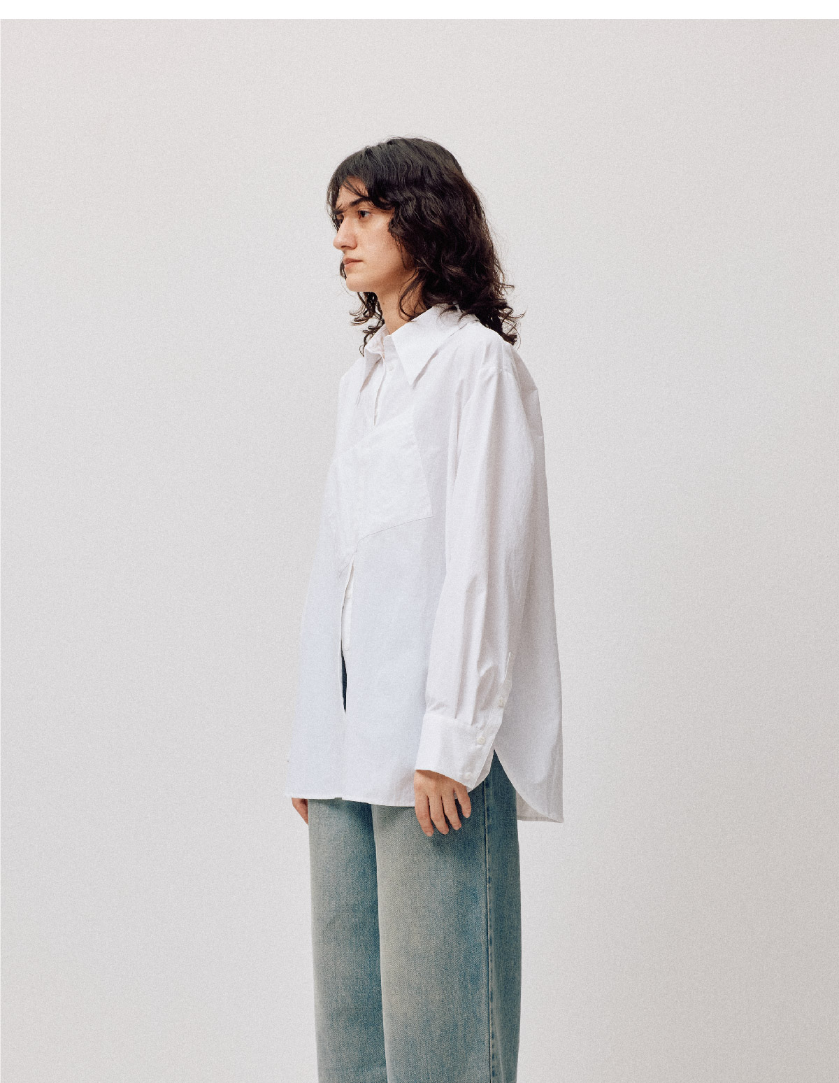 LIYIHAN 白上白几何拼接设计感纯棉衬衫休闲时尚简约