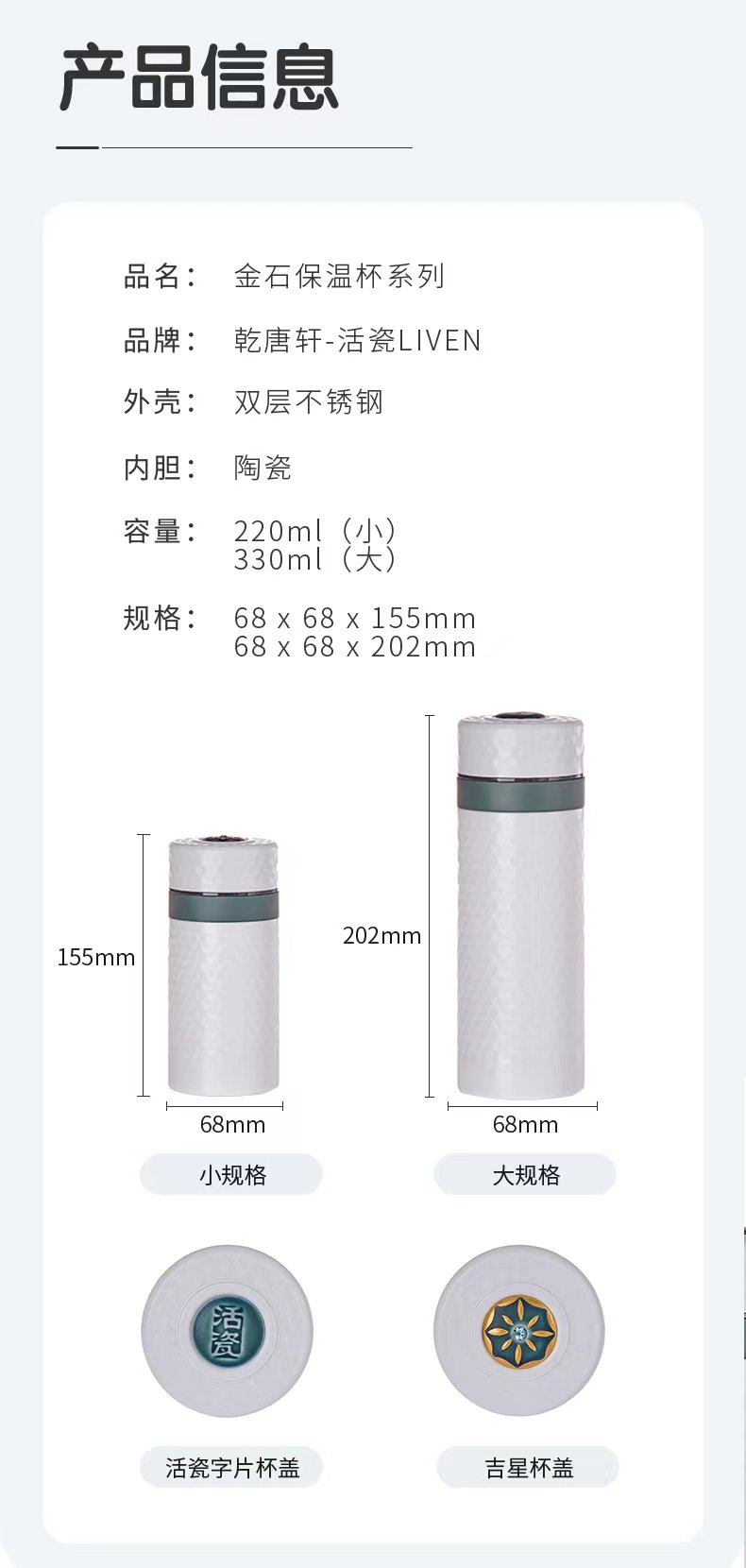 【限时优惠】金石保温杯 330ml 陶瓷内胆不锈钢外壳