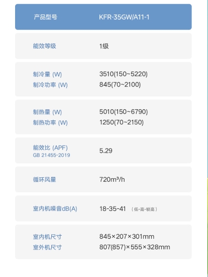 小天鹅KFR-35GW/A11-1分体套机极地白 一级能效 变频冷暖空调